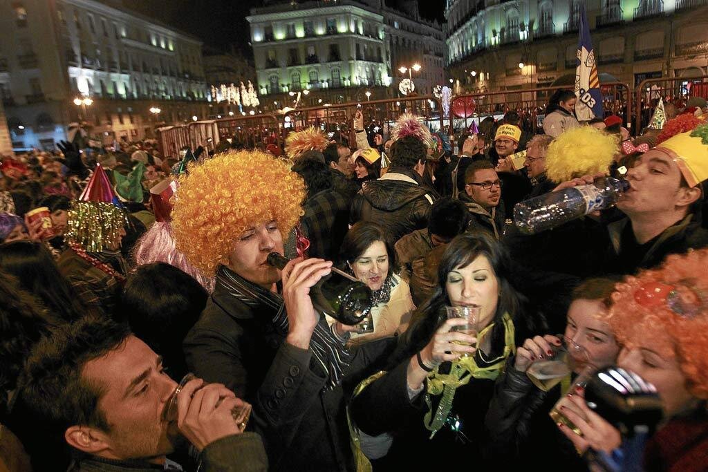 Новый год (Año Nuevo) в Испании празднуют в ночь с 31 декабря на 1 января. В новогоднюю ночь у испанцев принято собираться на улице в шумных компаниях. Устраиваются вечеринки, маскарады и т.д. Но самым оживлённым местом является площадь Пуэрта дель Соль, расположенная в Барселоне. Толпы людей собираются около старинных часов на доме Почты. У испанцев существует поверье: если в полночь съесть двенадцать виноградин одновременно с ударами курантов и загадать 12 желаний, то они непременно исполнятся. Весь день накануне Нового года в магазинах и ларьках продаются стаканчики с двенадцатью виноградинами. После боя курантов люди гуляют и веселятся до утра. Завтрак обычно состоит всего лишь из нескольких блюд: индейка, рыба, ассорти сыра, хамон и вино. Самое главное блюдо - таррон. Это испанский десерт вроде нуги с орехами и мёдом. Конечно же, не обходится праздник и без волшебника - Олентцентро или Папа Ноэль. В отличии от русского Деда Мороза на санях, испанский Папа предпочитает прой