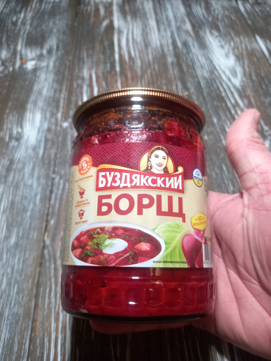 Здравствуйте! Сегодня на обзоре "Буздякский борщ" стоимостью 79 рублей. Пробовал я этот борщ в разных вариантах, пустым, тупо на воде, на говядине и сегодня я решил его попробовать по своему лучшему рецепту. Для качественного и вкусного бульена нам понадобятся 2 стейка с соусе "Алабама", они сразу нарезанные и немного маринованные продаются в "магните". Стоит на 50 р дороже чем, обычная свинина. Это мясо я перед варкой обжариваю по 3 минуты с каждой стороны,что бы мясо максимально стало сочным. Пока мясо не остыло и не успело отдать свои соки, оно нарезается на кубики и бросается в уже кипящую воду, туда же мы отправляем борщ из банки и варим 5 минут по инструкции. Вот так чудесно он выглядит, по вкусу мясо сохраняет свои вкусовые качества, у борща присутствует своеобразный вкус свёклы, он сильно отдает, но при этом это нравится. Но борщ кажется жидковатым, даже при таком количестве мяса. Итог такой: если хочется покушать быстро и дёшево, то вариант хороший. Оценка 7/10