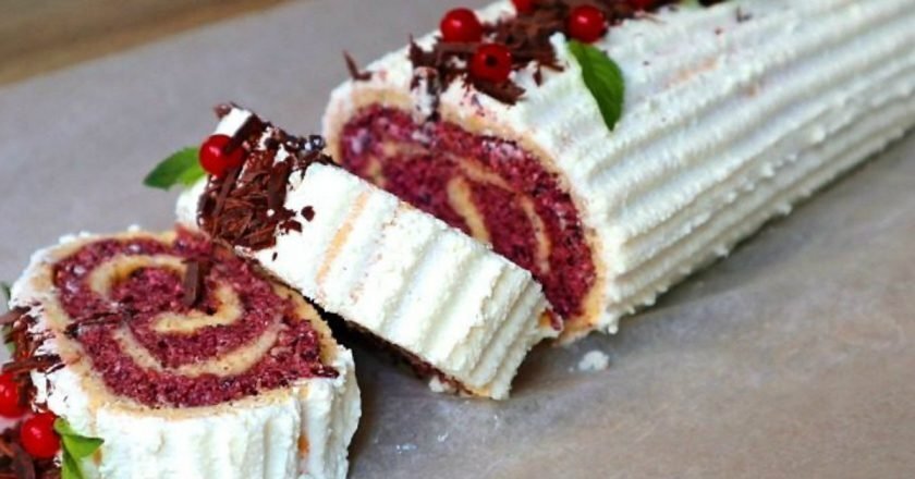 🔷Рулет смазала кремом, разложила ягоды и свернула. Убрала в холодильник пропитываться.