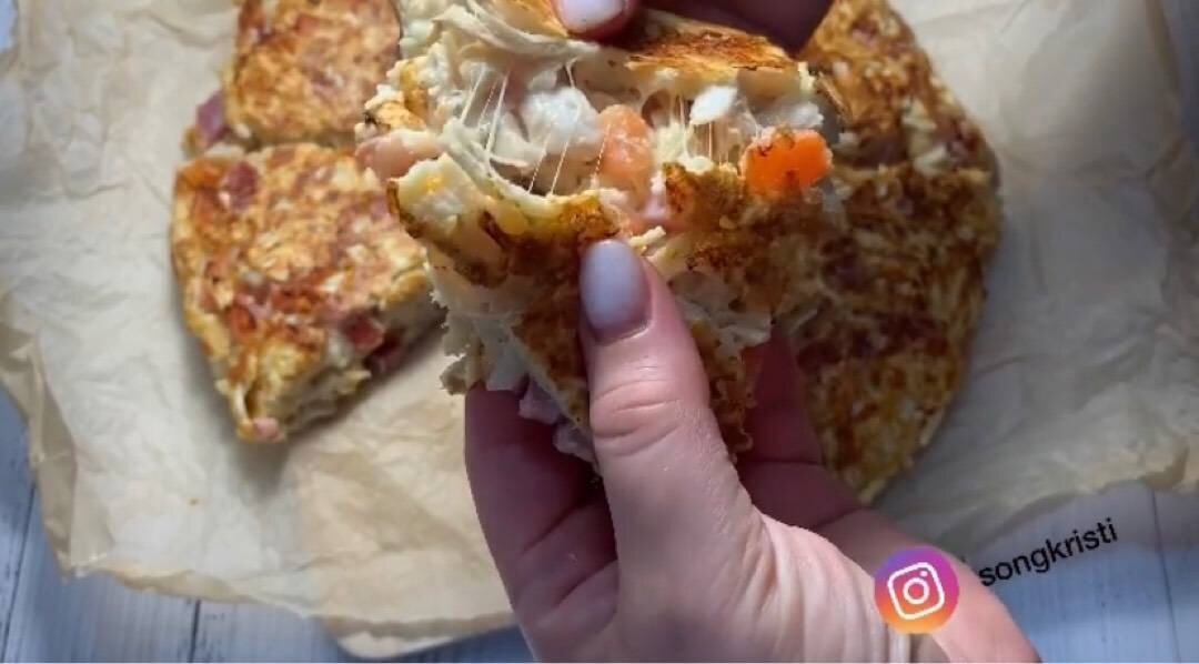 Обязательно приготовьте этот пирог и поделитесь со мной своими впечатлениями!❤️ Ингредиенты: Лаваш листовой, Яйцо, Ветчина, Филе куриное, Сыр, Молоко, Помидор, Соль, специи Способ приготовления: Нарезаем лаваш таким образом как показано на фото. Добавляем к лавашу яйца. Ветчину режем кубиком, филе рвём на волокна, сыр трём на терке, помидор режем кубиком и все отправляем в миску к яйцам и лавашу, заливаем молоком, добавляем любимые специи и хорошенько перемешиваем. Отправляем на сухую сковороду, разравниваем и жарим с каждой стороны по 5 минут. И получаем очень вкусный пирог! Обязательно приготовьте его. Приятного аппетита.