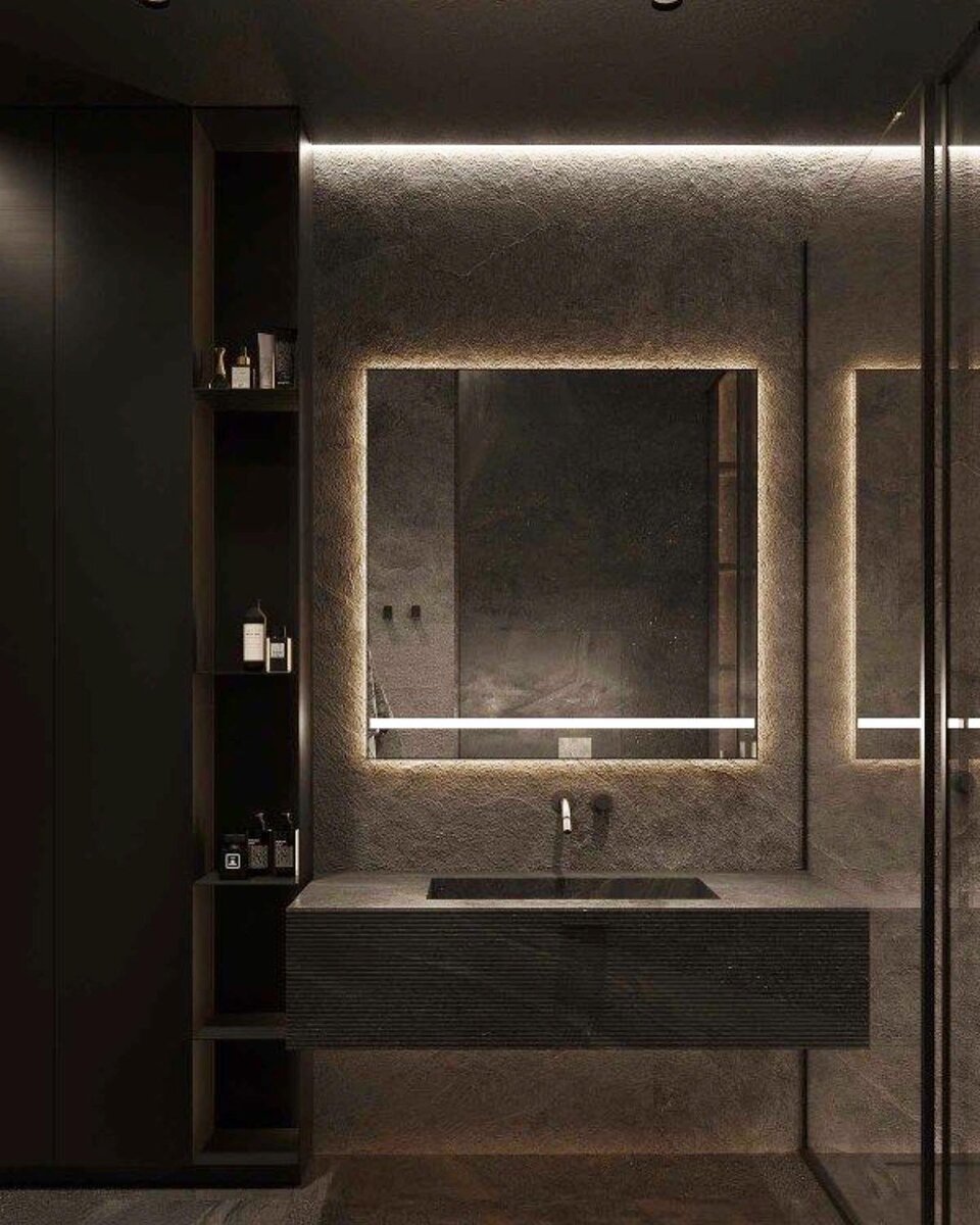 ◼️ Интересные Решения для Современного Санузла в Тёмных оттенках на моём объекте в Новостройке Москвы в жк Сити Парк. Меня зовут Григорий, я дизайнер-реализатор и ниже я опишу технические и эстетические составляющие этой ванной комнаты! Какие же интересные решения существуют в этом интерьере: ▪️ Раковина будет реализована из керамогранита под заказ; подобное изделие качественное и долговечное. В Москве и Мо много компаний, которые производят изделие из керамогранита - столешницы, раковины и даже подоконники! Керамогранит способен поконкурировать с искусственным камнем в плане срока службы! ◼️ Пол в Душевой зоне создан единым уровнем с санузлом, без поддона; предусмотрен незаметный для глаз уклон. ▪️ Чтобы сделать такое решение, нам необходимо будет поднять пол в санузле выше, чем в остальных комнатах и коридоре. Это решение нужно для создания правильного уклона канализационный трубы, которая соединит сливной трап в полу душевой зоны со стояком общей системы водоотведения в квартире.