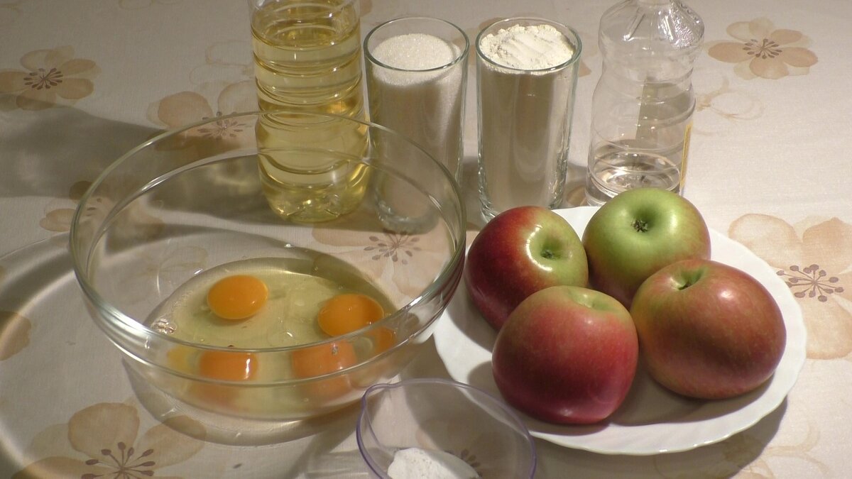 Привет, друзья! Сегодня я поделюсь с вами быстрым и простым, но обалденно вкусным рецептом яблочной шарлотки. Много яблок, нежное тесто. Идеальный баланс всех ингредиентов. Попробуйте и будете так готовить всегда! Подробный процесс приготовления шарлотки смотрите в видео-рецепте: ПОШАГОВЫЙ РЕЦЕПТ Ингредиенты: Яблоки - 4 шт. Яйца - 4 шт. Мука пшеничная - 1 стакан (150 грамм). Можно использовать 0,5 стакана муки 1 сорта и 0,5 стакана цельнозерновой муки. На мой взгляд, так еще полезнее и вкуснее. Сахар - 1 стакан (170 - 200 грамм) Соль - 1 ч.л. Сода пищевая - 1 ч.л. Лимонный сок или 9 % уксус - 2 ч.л. (для гашения соды) Масло растительное рафинированное - 1 ст.л. (для смазывания формы) Разрежьте яблоки на 4 части, удалите сердцевину и нарежьте тонкими ломтиками. Разбейте в миску 4 яйца. Добавьте к яйцам сахар, соль и погашенную лимонным соком или уксусом соду. Взбейте все ингредиенты миксером до однородного состояния. Добавьте в несколько приемов просеянную муку и взбейте все ингредиенты