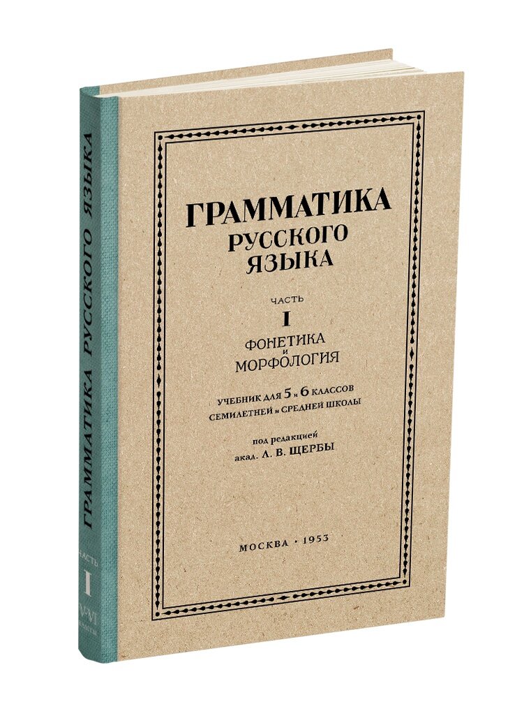 Русский язык 5-6 кл. Грамматика. Часть I. Фонетика и морфология. под ред. ак. Щербы Л.В. 1953. Изданный учебник приобрести можно на сайте «Сталинского букваря». «Великим, могучим, правдивым и свободным» называл русский язык И. С. Тургенев, а М. Горький указывал: «Русский язык неисчерпаемо богат и всё обогащается с быстротой поражающей». На русском языке создавали свои бессмертные произведения наши великие писатели, известные всему миру: Пушкин и Тургенев, Толстой и Чехов, Горький и Маяковский. По правилам грамматики происходит изменение слов, их сочетание в предложении, из отдельных слов создаётся осмысленная, связная речь. Только хорошо зная грамматику, можно по-настоящему овладеть языком, научиться точно выражать свои мысли, умело пользоваться в своей устной и письменной речи величайшим словарным богатством нашего языка. Учебник «Грамматика русского языка» под редакцией академика Л. В. Щербы состоит из двух разделов: морфологии и синтаксиса. Переизданный силами «Сталинского букваря»