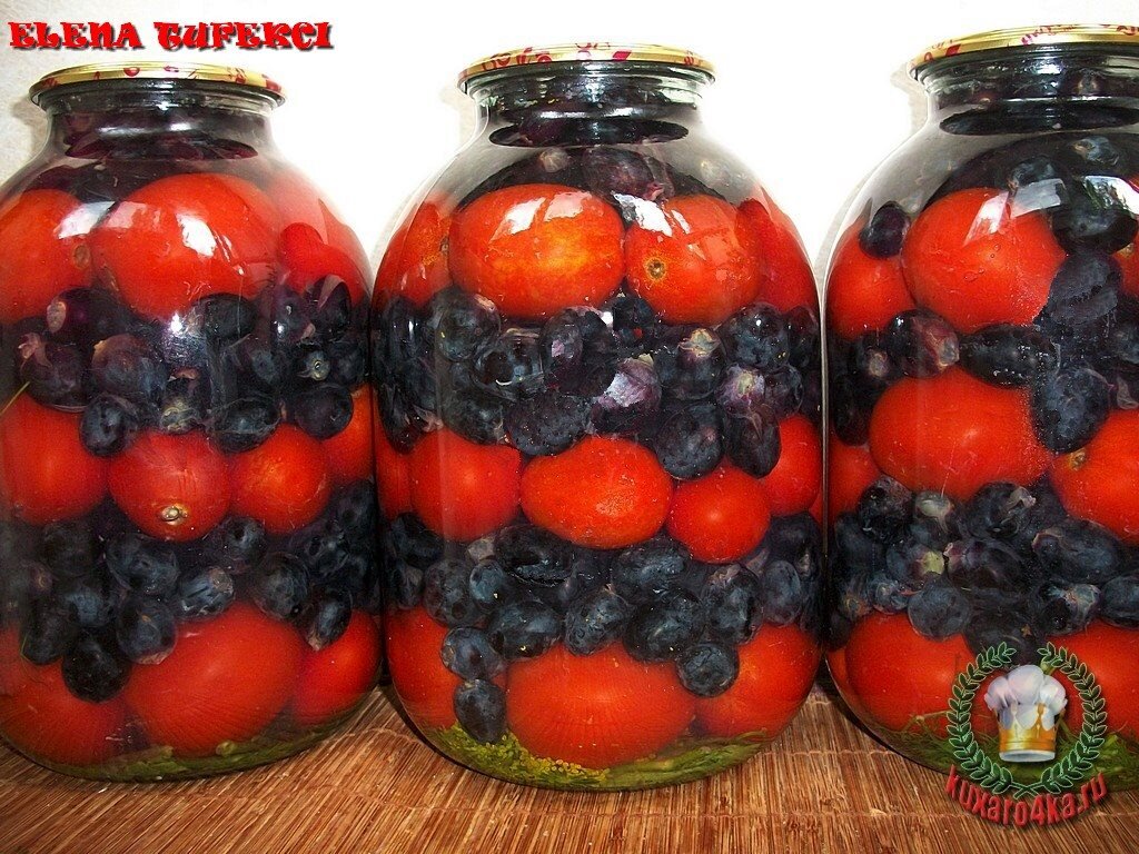 Помидоры очищаем от плодоножек. Промываем и накалывает в нескольких местах. Сладкий перец режем полосками. В стерилизованные 3-литровые банки выкладываем помидоры, виноград, сладкий перец, соль, сахар, специи, заливаем кипятком и оставляем на 30 минут. Воду сливаем, доводим до кипения и снова заливаем помидоры. Закатываем, переворачиваем, укутываем. Помидоры На 3 - литровую банку 1 кисть винограда 1 сладкий перец 1 горький перец 2 лавровых листа 5 листов черной смородины 5 листов вишни 10 горошин черного перца 1 лист хрена 1 столовая ложка соли 1 столовая ложка сахара Приятного аппетита! Подписывайтесь, чтобы первыми читать вкусные новости.