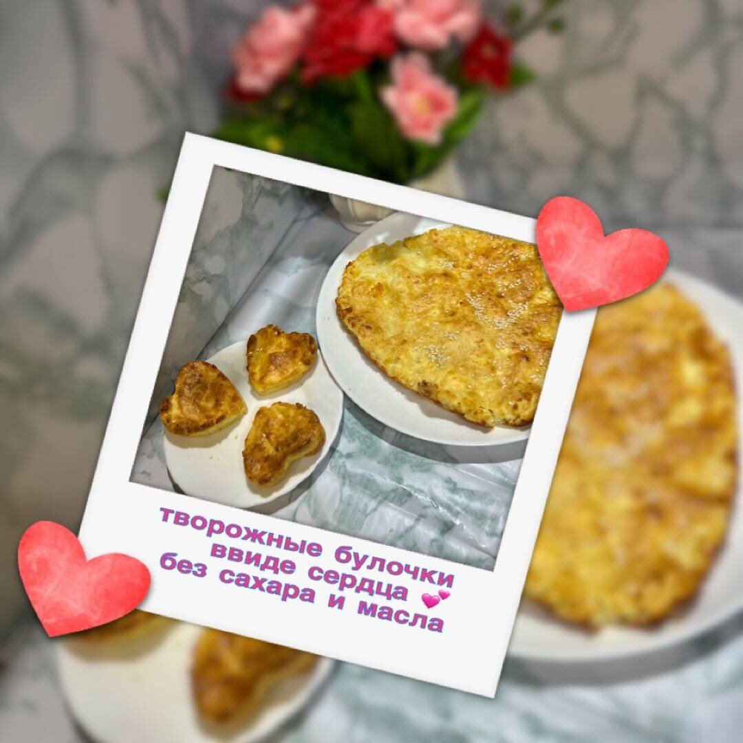 Ингредиенты: яйца, гр творога, по вкусу соль, гр муки Способ приготовления: Творог смешать с яйцами, добавить муку. Форму в виде сердца застелить пергаментной бумагой, смазать растительным маслом распределить тесто ложкой по форме, если липнет смочить ложку в воде. Также тесто уложить по формочкам. Выпекать в духовке при температуре 160 градусов 50 минут. Приятного чаепития !