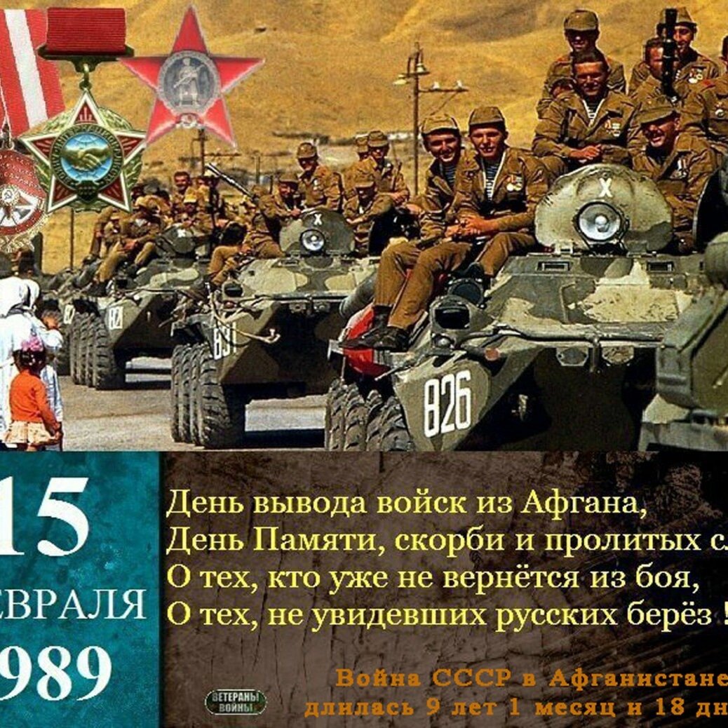 15 февраля в России объявлен Днем памяти воинов-интернационалистов. В этом году отмечается 33 годовщина со дня вывода советских войск из Демократической республики Афганистан. В декабре 1979 года советские войска были введены в Афганистан. Первыми на аэродроме Баграм, в 50 км к северу от Кабула, высадились части 105-ой гвардейской воздушно-десантной дивизии. За девять лет Советская Армия в ходе военных действий в Афганистане понесла самые большие потери со времен Великой Отечественной войны. Свыше 14 тысяч солдат погибли, шесть тысяч скончались от ран и болезней. В 1988 году после подписания Женевских соглашений начался вывод советских войск из Афганистана. 15 февраля 1989 года его территорию покинули последние колонны частей 40-й армии и все специальные подразделения пограничных войск. Многие из тех, кто прошёл эту войну, в настоящее время продолжают трудиться в самых различных профессиональных сферах. Мы отдаём дань памяти солдатам и офицерам, всем тем, кто до конца остался верен св