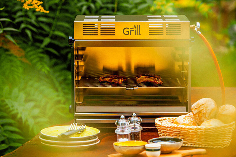 Изобилие кухонной техники заставляет предполагать, что в этой области едва ли возможно предложить потребителям что-то новое. К счастью, это не так, и предела совершенству, видимо, нет! А утвердиться в этой мысли нам поможет WeGrill – новейшее изобретение итальянских инженеров и дизайнеров. Гриль оборудован керамическими инфракрасными горелками нового типа от компании Infragas. Горелки имеют сетчатую структуру, что обеспечивает равномерный прогрев всего объема прибора. Решетку для жарки можно регулировать по высоте, что позволяет варьировать степень нагревания и достигать тонкой обработки продуктов. Температура на поверхности горелки достигает 850°С. Кулинарная обработка пищи ведется за счет теплового излучения, а не прямого контакта с огнем, кроме того, горелки располагаются наверху, а не под готовящимися продуктами. Это новшество трудно переоценить, потому что вы можете приготовить у себя на кухне те же блюда, что и на мангале или уличном дровяном гриле, но при этом WeGrill не создаст