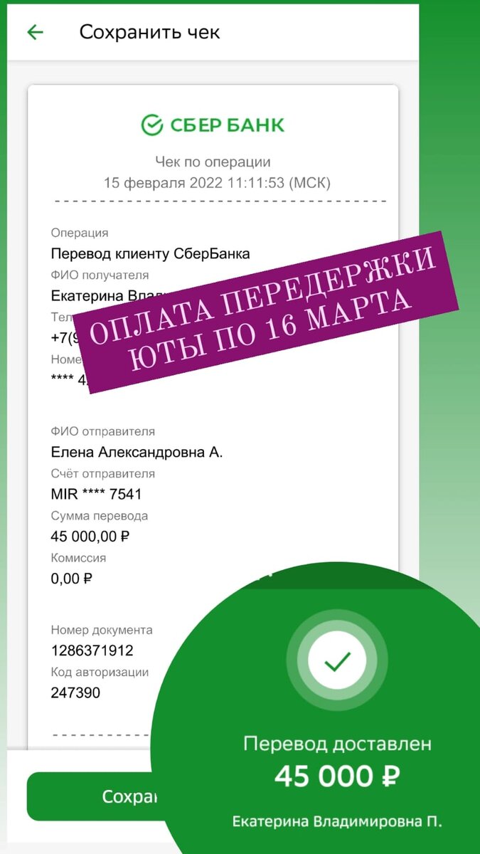 Карта СБ на имя Елена Александровна А.