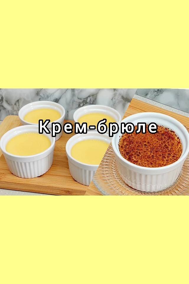 Ингредиенты: - сливки 35%, - сахар, - экстракт ванили, - желтки, Соль , Коричневый сахар для корочки Способ приготовления: К сливкам добавляю щепотку соли 1/3 от всего количества сахара. И всё хорошо перемешиваю. Ставлю на огонь и довожу до кипения, но не кипячу. Снимаю с огня, добавляю экстракт ванили и всё хорошо перемешиваю. Накрываю плёнкой и оставляю на 15 минут. В отдельной посуде соединяю желтки и оставшийся сахар, всё аккуратно перемешиваю стараясь не вбивать. Когда прошло 15 минут возвращаюсь сливки опять на огонь и довожу до кипения. Аккуратно вливаю сливки в желтки всё время перемешивая. Сразу разливаю смесь по формочкам. Наливаю в форму горячую воду, аккуратно стараясь не брызгать. И отправляю в заранее разогретую духовку до 165°С на 20-25 минут. Серединка десертов после запекания должна быть подвижной. Перекладываю формы на решётку,. Даю им остыть при комнатной температуре и отправляю в холодильник хотя бы на 2 часа. При подаче сверху крем-брюле посыпаем коричневым сахаром