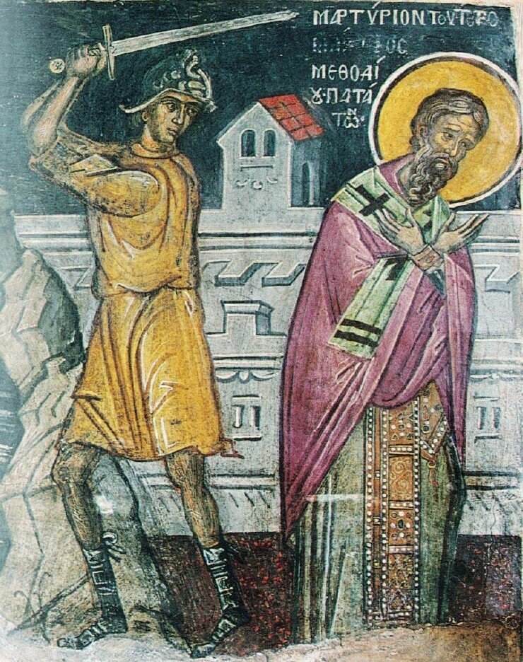 Священномученик Мефодий Патарский: "Благословенна ты, всеблагословенная и всевожделенная! Благословениями Господа преисполнено Богоблагодатнейшее имя Твое, Богородительница и просветительница верных. Ты объемлешь, так сказать, неотъемлемого; Ты – корень прекраснейшего цвета (Ис. 11:1). Матерь Создателя, питательница Питающего, содержащая Вседержителя, носящая держащаго все словом (Евр. 1:3). Ты – врата грядущего Бога по плоти, клещи очистительного угля (Ис. 6:6), малое вместилище вмещающего в недрах своих все, руно непостижимой росы (Суд. 6:37), жизнедательный, желанный Давидом (2 Царств. 23:15), колодец Вифлеемский, из которого проистекло питие бессмертия. – очистилище (Исx. 25:17), из которого Бог явился людям в человеческом образе, – чистое одеяние одевающагося светом, как ризою (Пс. 103:2); Ты дала ненуждающемуся ни в чем плоть, которой Он не имел, чтобы Он, Всемогущий, соделался тем, чем благоволил соделаться. Что славнее этого? Что выше этого? Тот, Кто наполняет и небо и землю (Иер. 23:24), Которому принадлежит все, соделался нуждающимся в Тебе: ибо Ты сообщила Богу плоть, которой Он не имел, Ты облекла Всемогущего в благолепное всеоружие плоти, чрез которую и Он соделался видимым и доступным для меня, и я могу приступить к Нему и взирать на Него, и чрез которую все раскаленныя стрелы лукаваго будут угашены (Ефес. 6:16). Дивно и прекрасно, Матерь и раба Божия! Дивно и прекрасно, имеющая Заимодавца всех должником Своим! Все мы – должники пред Богом, а Он делается Твоим должником. Сказавший: чти отца твоего и матерь твою (Исх. 20:12), Сам благоволив принять на Себя это, тем более соблюдет благорасположение и собственную заповедь к послужившей Добровольному Его рождению, и боголепно прославит Ту, Которую наименовал Матерью без мужа, Сам родившись без отца. Так будет это, будет! Приносимые нами хвалы Тебе, святейшее и дивное жилище Божие, не суть слова бесплодного красноречия, и не плод мирской лести и угодливости – это славословие Тебе, Богохвальная и млекопитающая Бога, Который дает смертным начало бытия посредством рождения, во свидетельство действительной истины. Впрочем, и нам и будущим поколениям не достанет времени, чтобы по достоинству ублажить Тебя, Матерь Царя веков (1Тим. 1:17), как говорит в одном месте святой Пророк, внушая нам непостижимость Твою: «как велик дом Божий, и как пространно место владычества Его! Велик Он и не имеет конца, высок и неизмерим» (Варух. 3:24–25). По истине пророческое и по истине неложно это слово о Твоем величии: ибо Ты одна удостоилась уподобиться Богу в делах Божиих. Ты одна родила по плоти Бога, единородно и совечно рожденного от Бога Отца. Так по истине исповедуют содержащие правую веру...Радуйся, град великого Царя, в котором совершились таинства нашего спасения. Радуйся, земное небо, верный наконец Господу город Сион (Ис. 1:26). Радуйся и светись, Иерусалим, ибо пришел Свет твой (Ис. 60:1); Свет присносущий, Свет вечный, Свет невещественный, Свет единосущный Богу Отцу, Свет сущий в Духе и в котором (пребывает) Отец, Свет просветивший века, Свет просветивший вышемирное и находящееся в мире, Христос истинный Бог наш. Радуйся, город святой и избранный Господом, торжествуй с веселием праздники свои, которые уже не подвергнутся обветшанию. Радуйся, город счастливейший: поелику славное возвещено о тебе (Пс. 86:3); священники твои облекутся в спас