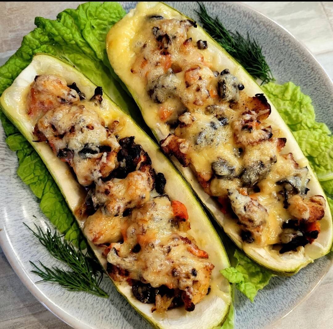 Очень люблю запекать, выпекать. Это не только вкусно, но и полезно. Ингредиенты: Кабачки , Лук, Чеснок, Морковь, Куриная грудка , Сыр , Шампиньоны Способ приготовления: Убираем сердцевину у кабачков. Обжариваем лук, морковь, курочку. Отдельно обжариваем шампиньоны. В лодочки укладываем начинку, в духовку на 190°, 45 минут, достать, посыпать сыром и в духовку на 5 минут. Готово! Объедение 🤤🤗