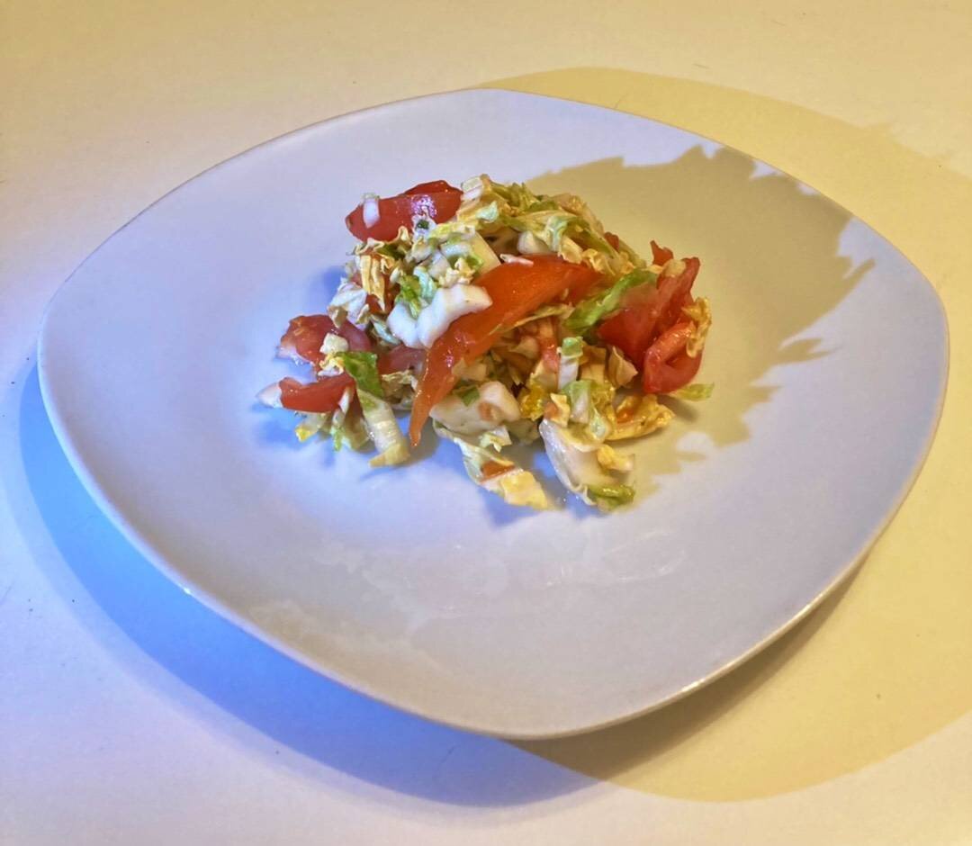 #игры Сегодня предлагаю приготовить яркий, сочный салат из пекинской капусты с помидорами 😋Такой салат готовится легко и просто, а получается вкусным 😁. Ингредиенты: пекинской капусты, спелых помидоров, соль, растительного масла, бальзамического уксуса, зелёного лука Способ приготовления: Вымытую пекинскую капусту нарезать кубиками и переложить в удобную миску для приготовления салата. Затем вымыть помидоры, удалить плодоножки и нарезать их дольками. Нарезанные помидоры отправить в миску к пекинской капусте. Теперь к ингредиентам добавить мелко нарезанный зелёный лук, соль. Далее заправить салат бальзамическим уксусом, растительным маслом, перемешать хорошо. Готовый салат можно подать к столу с гарниром или как самостоятельное блюдо.🤔Приятного аппетита. 😋