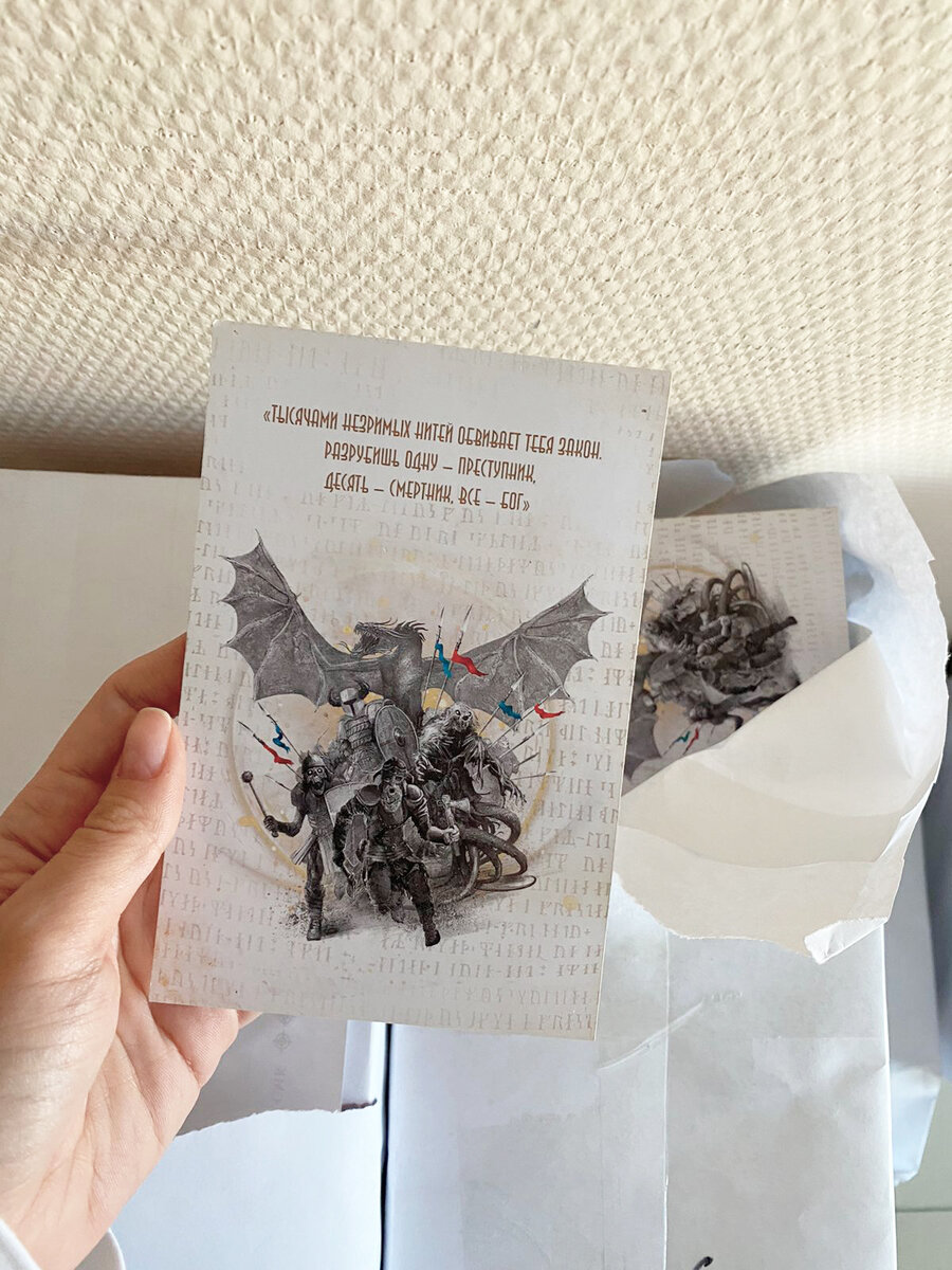 Друзья, мы к вам с отличными новостями! На днях типография передала для нас посылку, мы поспешили раскрыть ее, а там… долгожданные открытки! В чем их ценность, кроме красоты? Что ж, приготовьтесь… На обратной стороне каждой открытки будет послание Ника Перумова с автографом! Ох, какое путешествие ждет эти создания из бумаги, краски и слова . Прямо с типографского станка они попали к нам в издательство, а дальше отправляются в Америку — к Нику Перумову. Там, на другом краю земли, росчерк пера создаст заветную подпись. Открытки снова отправляются в путешествие. Новый пункт — Россия. Мы получим их и вложим в первую тысячу книг «Гибели Богов». Итак, первая тысяча покупателей получит, помимо книги, автограф Ника Перумова и послание, которое связано со всей историей Упорядоченного. Вот такое большое путешествие ждет маленькую открытку с подписью Мастера, прежде чем она попадет в руки читателю. Ах, да… открыток будет три! Остальные будут вложены в книги, которые выйдут за «Гибелью Богов».