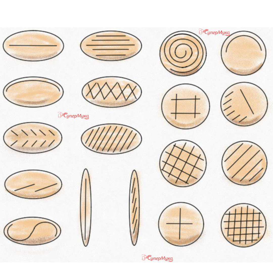 Красивые и правильно нанесённые надрезы на хлебе говорят о мастерстве пекаря, его индивидуальном почерке. Но не всегда удается быстро достичь нужных результатов. Зачем наносить надрезы на тесте? Надрезы на заготовках наносятся с целью защиты от возникновения разрывов корки в ненужных местах. Намеренно созданные надрезы контролируют слабые места в изделии, а также моделируют его форму и объем. Что важно учитывать при нанесении надрезов? Глубина надрезов зависит от степени брожения тестовых заготовок: чем больше тесто увеличилось в объёме, тем менее глубокими должны быть надрезы. Надрез должен получаться тонким, лёгким и резким! Для этого используйте острое и удобное лезвие! Никаких кухонных ножей, они будут тянуть за собой тесто Правила нанесения надрезов Про глубину надрезов Для большего раскрытия гребешка необходимо тонко подрезать тесто, затронув лишь тонкий лоскут теста Если лезвие прорезает тесто глубоко - заготовка лишь разойдётся, это тот вариант, когда наша цель - «расши