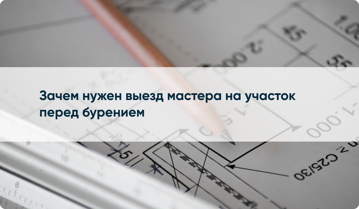 Главное, на что обращает внимание мастер при выезде на участок Что мастер определяет дополнительно Требования для бурения крупногабаритной техникой Требования для бурения малогабаритной техникой Чем еще вам будет полезен мастер Что влияет на цену бурения скважины и цену обустройства ее под ключ? По всем этим вопросам вас профессионально проконсультирует выездной мастер, на счету которого не менее ста выездов на объекты бурения. При осмотре участка, мастер всегда учитывает не только очевидные факторы, но и старается учесть все нюансы, которые могут помешать успешному бурению на воду. Это поможет избежать дополнительных затрат в будущем. Учитывая вышесказанную информацию, вы сможете и сами составить предварительную смету, черновой проект бурения и даже разберетесь, соответствуют ли условия на вашем участке требованиям к бурению скважины. Но, будьте уверены, специалист-профессионал сделает это за вас быстро, технически грамотно и в кратчайшие сроки. Выбор за вами. ВЫЕЗД МАСТЕРА НА У