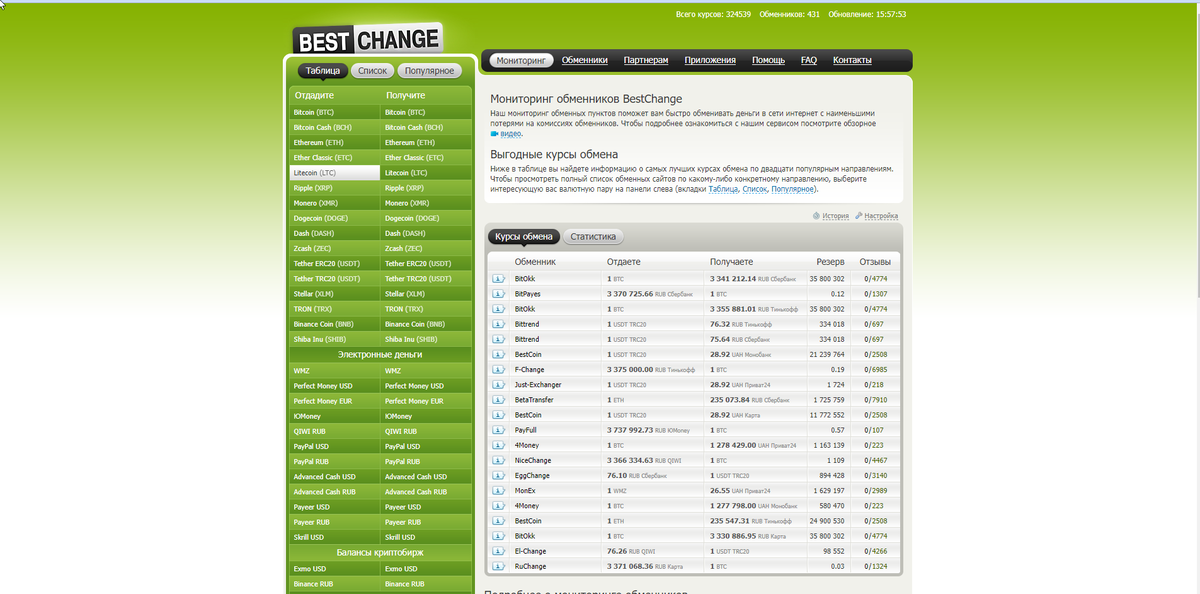 Мониторинг BestChange предоставляет исчерпывающую информацию по выбранным пунктам, начиная с самого важного — курса обмена — и заканчивая и заканчивая резервом обменного сервиса, отзывами пользователей, репутацией.