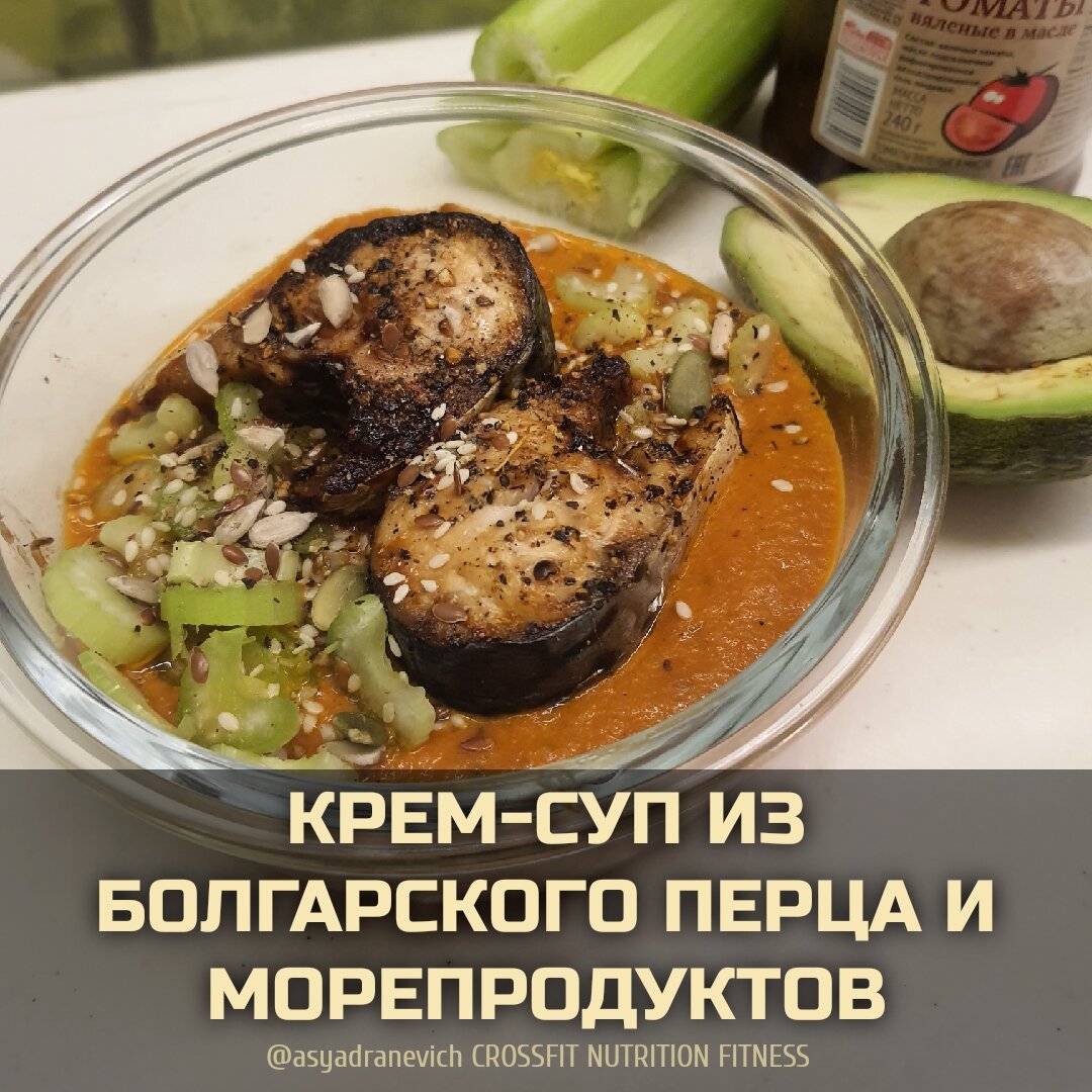 Такой суп будет хорошо сочетаться с любой рыбой, мидиями или другими морепродуктами и придется по вкусу любителям средиземноморской кухни. Главная "фишка", придающая этому блюду насыщенный, благородный вкус и напрочь избавляющая от ассоциаций с детским питанием - это добавление вяленых томатов: сам по себе ингредиент, конечно, калорийный, но да много нам и не потребуется. Ну а в остальном же состав этого супа вполне умерен по своей энергетической ценности: никакого сыра, картофеля или сливок, только отварные или запеченные овощи, острые специи и рыба. Ингредиенты: кБЖУ: На порцию/Указанное количество: 312/26/17/14 Приготовление: 1. Подготавливаем все необходимое. 2. Нарежьте болгарский перец слайсами, удалив семечки. Разделайте и нарежьте скумбрию. Затем, выложите рыбу и овощи в емкость для запекания, после чего поставьте в разогретый до 200 С духовой шкаф на 30-40 минут. 3. Очистите морковь, после чего нарежьте ее небольшими кусочками и бланшируйте в кипящей воде пару минут. 4. Дост