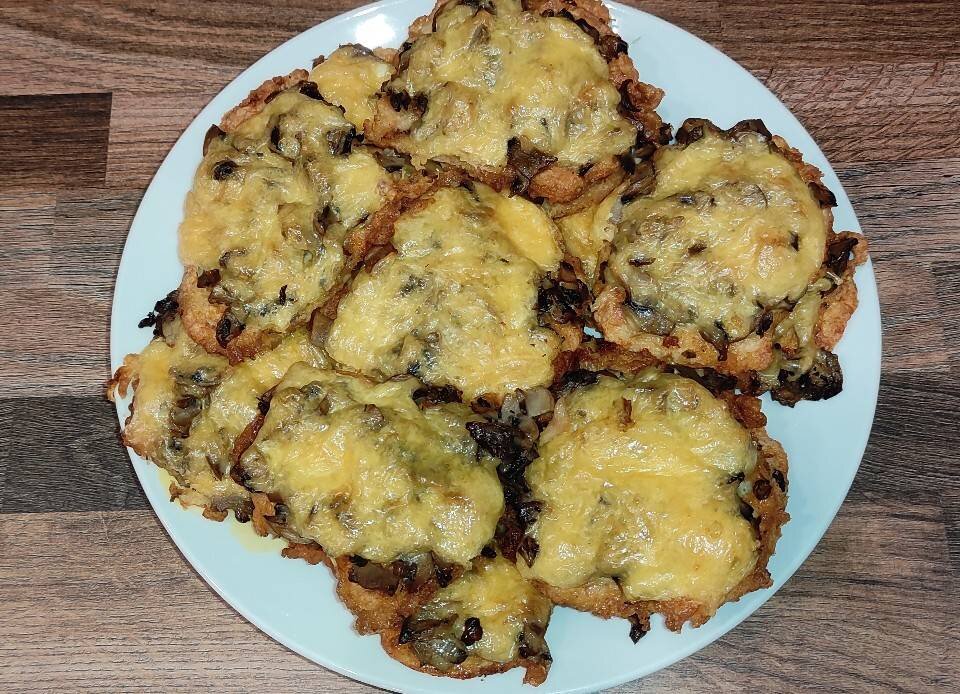 Чудовий рецепт м'яса, який можна приготувати як на святковий стіл, так і в якості звичайної вечері під будь-який гарнір. Замість курятини можна взяти філе зі свинини або телятини (в будь-якому варіанті виходить дуже смачно). Ингредиенты: курячих філе (будь-яка м'ясна вирізка - 0,5 кг), яєць, твердого сиру, майонезу або густого йогурту, борошна, цибуля , шампіньйонів (можна консервованих), Сіль, Перець, Спеції (+ сухий кріп) Способ приготовления: Помити, висушити, порізати порційними шматочками та відбити куряче філе. Кожен шматочок посолити, поперчити, долати спеції. Підготувати кляр для відбивних (2 яйця збити виделкою, до оплати трошки солі і улюблені спеції (я додаю копчену паприку). В окрему ємність набрати борошно. Пательню добре розігріти, налити трошки олії. Тоді кожен шматочок м'яса спочатку опустити в борошно, тоді в кляр, тоді на пательню. Смажити по декілька хвилин з кожного боку. Готові відбивні поки відставити вбік і переходимо до грибів. Свіжі гриби почистити, нарізати. С