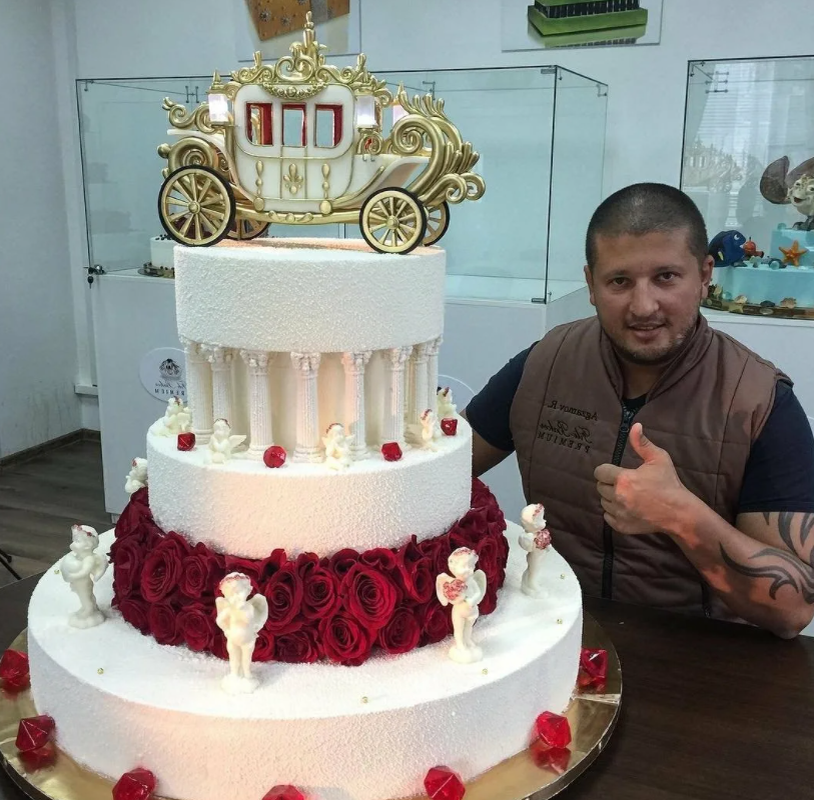 Ренат считается самым узнаваемым российским кондитером. Он печёт торты для знаменитостей где запрашивает за 1 кг 2500р.