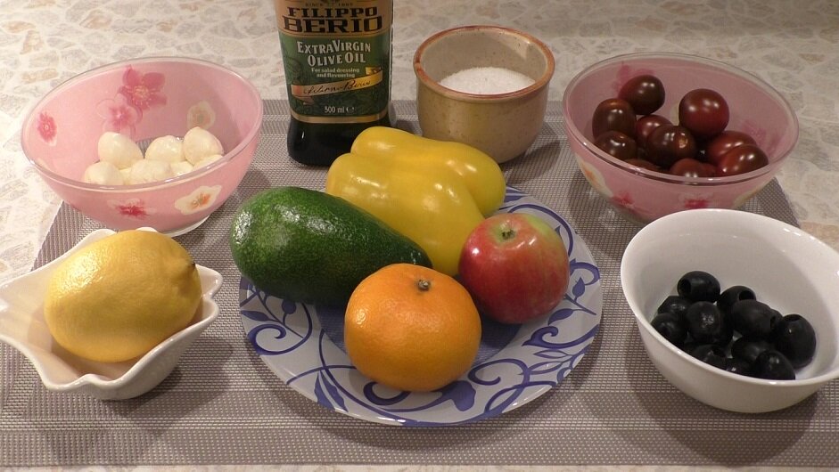 Привет, друзья! Хочу погрузить вас в атмосферу итальянской ривьеры. Почувствуйте мягкий средиземноморский бриз и яркий, искристый вкус итальянской кухни. Представляю вашему вниманию салат "Солнечная Италия", который я создала, вдохновившись идеями итальянской кухни. Яркий, сочный вкус, кладезь витаминов и микроэлемнтов. Просто идеальный салат для здорового питания. Добавьте на свой стол кусочек итальянского солнца! Подробный процесс приготовления салата смотрите в видео-рецепте: ПОШАГОВЫЙ РЕЦЕПТ Ингредиенты: Ингредиенты: 200 грамм помидоров черри 100 грамм сыра Моцарелла (маленькие шарики) Маслины или зеленые оливки без косточек - 12 шт. Половинка сладкого болгарского перца 1 спелый авокадо 1 маленькое яблоко 1 мандарин Соль - по вкусу 1 столовая ложка лимонного сока 2 столовые ложки оливкового масла первого холодного отжима (extra vergin) Нарезаем пополам помидоры черри Нарезаем соломкой половинку болгарского перца. Лучше использовать желтый или оранжевый перец, так салат будет ярче.