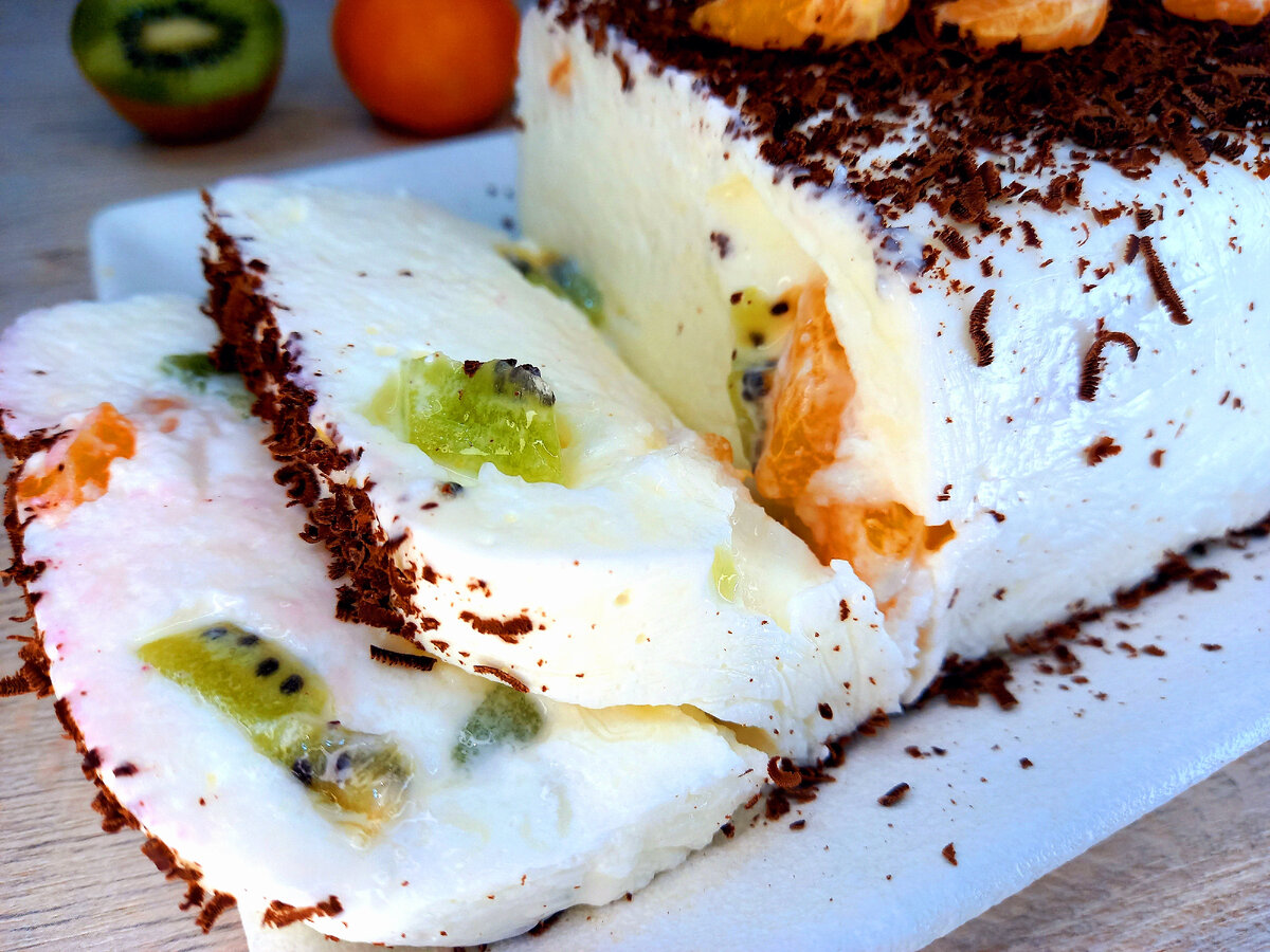 Всем привет мои дорогие! Если Вы любите легкие и нежные десерты, рекомендую приготовить по этому простому и быстрому рецепту. Для этого десерта подойдут любые ягоды, фрукты или даже сухофрукты на Ваш вкус. Я очень люблю готовить с киви и мандаринами. Подробнее, процесс приготовления посмотрите видео- рецепт: Как приготовить: Первым действием необходимо приготовить желатин по инструкции. Пока желатин набухает в сторонке, приготовим основную массу. В миску выкладываю сметану. Сметану можно взять любой жирности. Я беру 20 % Теперь добавляю к сметане сахар и ванилин, или ванильный сахар. А также сахар можно заменить на сахарную педру. Все хорошо перемешиваю. Далее беру фрукты, очищаю и нарезаю на небольшие кусочки. У меня сегодня мандарины и киви. К этому времени желатин уже набух, распускаю его на водяной бане и добавляю к сметанной массе. Перемешиваю, следом туда же добавляю фрукты.Еще раз все хорошо перемешиваю. Теперь переливаю эту массу в любую подходящую форму и отправляю десерт в