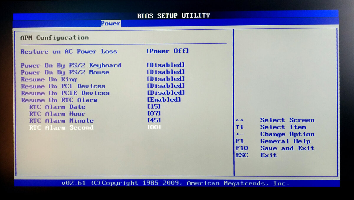 И начинаем устанавливать время, по которому часы реального времени (RTC), находящиеся на материнской плате, "разбудят" компьютер.