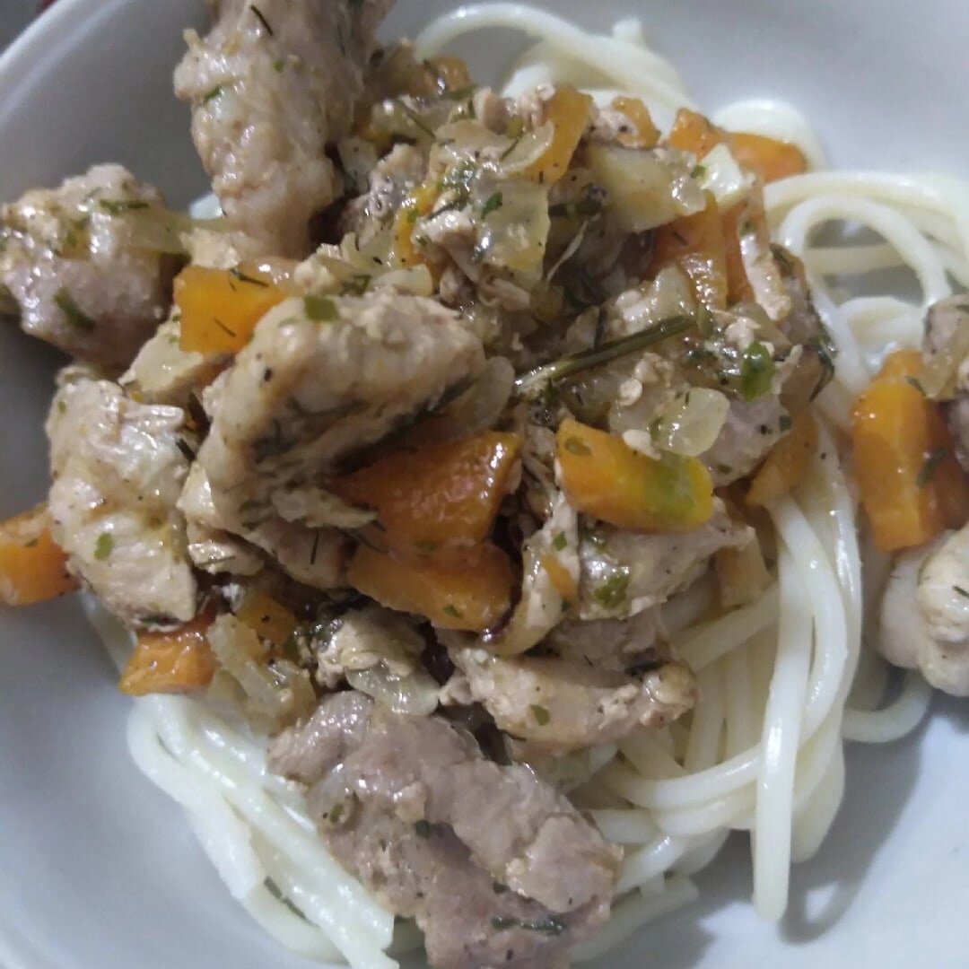 Прекрасное мясо в собственном соку получается при приготовлении свинины по такому способу. Оно оттеняется сладостью моркови и пряностью различных специй. Для начала подготовим обычные для нас овощи - это репчатый лук и морковь. Их порежем небольшим кубиком и обжарим на растительном масле лишь слегка, чтобы вся влага не ушла, а появился лишь приятный вкус. Следующим шагом станет подготовка мяса. Его необходимо порезать на небольшие кусочки, чтобы уменьшить время приготовления. Добавляем мясо к овощам и немного припустим, чтобы выделился мясной сок. Не забываем помешивать. Когда сок выделится из мяса необходимо огонь под сковородой уменьшить до минимума. На данном этапе можно добавить специи : черный молотый перец, сушеную зелень и соль. Не перемудрите, что не отбить вкус. Специй пусть будет лучше меньше, чем больше. Теперь закрываем плотно крышкой, дабы наш сок не испарился, и начинаем тушить не менее получаса. Не забывайте поглядывать на готовящееся блюдо и периодически помешивать, а