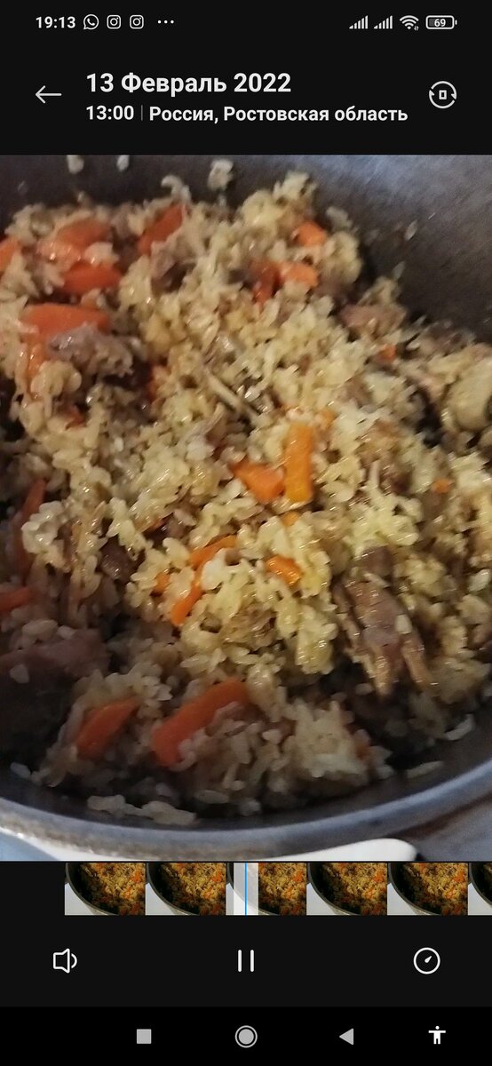 Готовим диетический плов после ковида. Меня ковид ударил по кишечнику. Теперь надо восстанавливаться, готовить диетические блюда. И вот одно из таких блюд плов. Возьмём две голени индейки, 2 луковицы, 1 большая морковь. Специи. Разогреть масло подсолнечное и обжарить мясо. Я делала на слабом огне, потому что не было сил ещё. Соединить мясо с луком и морковью. Морковь я всегда режу крупно, потом её хоть видно в плове. Ещё тушим всё вместе мин 15.Затем высыпаю рис сверху. И наливаю воды чуть выше риса на 2 см. И опять на медленный огонь под крышкой на 30 мин. Не перемешивать. Отключить и оставить на плите. Рис распаривается и рассыпается и вкус отменный.