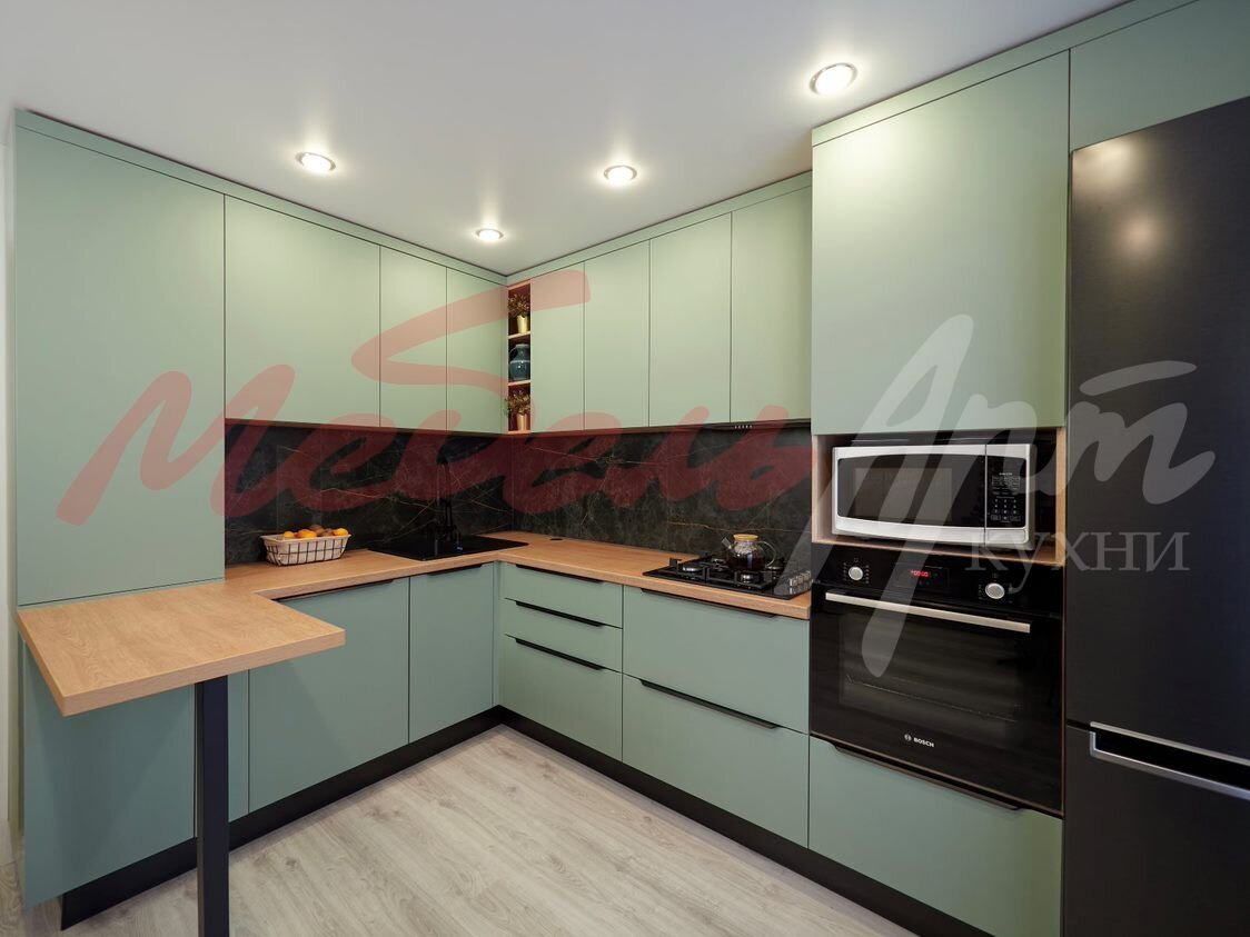 Кухня на заказ позволяет учесть все эти нюансы — нестандартные ниши и размеры, выступы и сложную конфигурацию. Но и заплатить придется существенно больше.