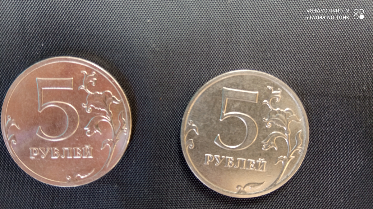 На фото две монеты по 5 рублей. На одной монете с лева