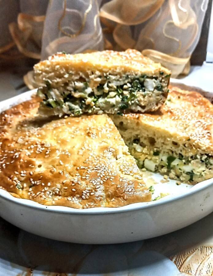 Идеальный вариант для завтрака #заливнойпирог #игры Ингредиенты: гр Мука, Кефир, Яйцо + белок 1 шт, гр Майонез, ч.л Сода пищ, гр Разрыхлитель, Желток, ст.л Сметана, Яйцо вар, гр Лук зелёный Способ приготовления: Яйца и лук мелко порезать, перемешать. В кефир добавить соду, хорошо перемешать венчиком, добавить яйца и белок, ещё раз перемешать, добавить майонез, хорошо перемешать венчиком. Добавить муку, соединенную с разрыхлителем. Перемешать. Форму смазать маслом, выложить половину теста, распределить по форме. На тесто выложить начинку и залить второй половиной теста, стараясь полностью покрыть начинку. Желток смешать со сметаной. Залить смесью пирог, распределяя по поверхности кисточкой. По желанию можно присыпать кунжутом. Выпекать 25 минут в разогретой до 180 градусов духовке. Готовьте с удовольствием.