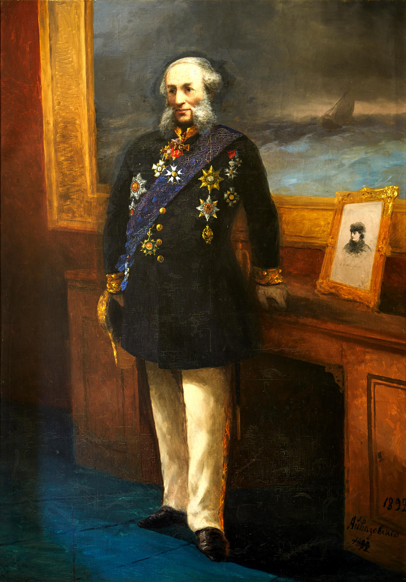 В Феодосийской картинной галерее им. И.К. Айвазовского хранится больше 400 картин мариниста. Портал «Культура.РФ» выбрал пять из них. В нашем материале — немного об истории создания картин. Узнайте, сколько автопортретов написал Айвазовский, что за полотно купили на лондонском аукционе Christie’s за два миллиона долларов и путешествия в какие страны вдохновляли художника. «Автопортрет» (1892) Иван Айвазовский прославился благодаря морским пейзажам, но он также работал и в жанре портрета. Обычно героями его картин становились близкие, однако сохранилось несколько полотен, на которых изображены известные люди: среди них — поэт Александр Пушкин и флотоводцы того времени. Писал он и автопортреты — всего мастер создал около 10 картин со своим изображением. Самый известный автопортрет Айвазовский написал в 1874 году, его он представил на выставке во флорентийской галерее Уффици. На парадном автопортрете из коллекции Феодосийской галереи Айвазовскому 75 лет. Он создал его, чтобы запечатлеть д