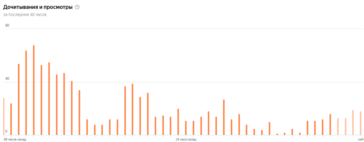 Тут даже не добрый день, получается.. Хотел бы с вами поделиться историей и своими догадками о том, что всё-таки есть некая конспирология в отношении дзена к авторам. Также хочу обратить ваше внимание на то, что уникальность и оригинальность моего материала соответствует неким нормам, так как текст пишу лично я и выражаю свои мысли я логично (по крайней мере так кажется мне). Читаю порой интересное в дзене и вижу разные каналы развивающиеся и, читая их, порой удивляешься, почему информационная грязь так активно развивается? но до неё абсолютно не хочется опускаться, благо дзен к ней после относится категорически И на фоне последних дней и большой волны "некоего хайпа" одного видео я был замотивирован выложить пару статеек, а также интересных видео, которые сам лично делал, монтировал, рендерил и потратил пару тройку часов на это, но я понимал, что трудозатраты всегда оправданы, но чтобы настолько.. Приведу в пример пару графиков. Это статистика за последние 48 часов. По мере насыщен