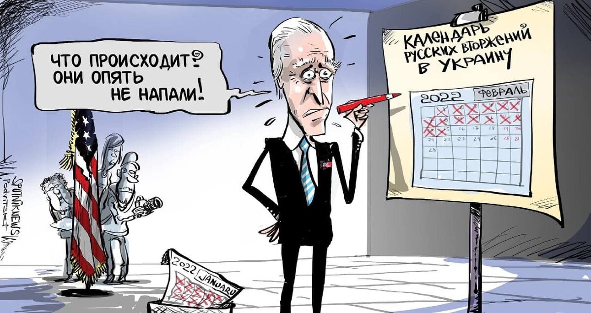 Назначенная Байденом на 16 февраля войнушка не случилась. Как же так? Западные лидеры вкупе со своими СМИ утверждали о нападении России как о неизбежном факте, ибо так им докладывала собственная разведка. Только время не было установлено абсолютно точно — в час, или в три часа ночи. А так-то факт войны был для них однозначным. Эвакуировали из Киева свои посольства, инструкторов, советников, црушников. Кого во Львов, кого ещё куда подальше. И не спали. Всю ночь мониторили на Майдане и в других местах, прислушивались к рёву моторов российских танков и свисту ракетно-бомбовых ударов. Не дождались. И злые в своих обманутых надеждах, пострадавшие от коварства русских, не выспавшиеся, помятые, продолжили размышлять о своих ближайших дезинформационных планах. Для этого в медийный простор необходимо сразу же начать вкачивать несколько фантастических рассказок. Во-первых, ненападение России — это победа Байдена и всего Запада, которые героическими совместными усилиями испугали Путина, который в
