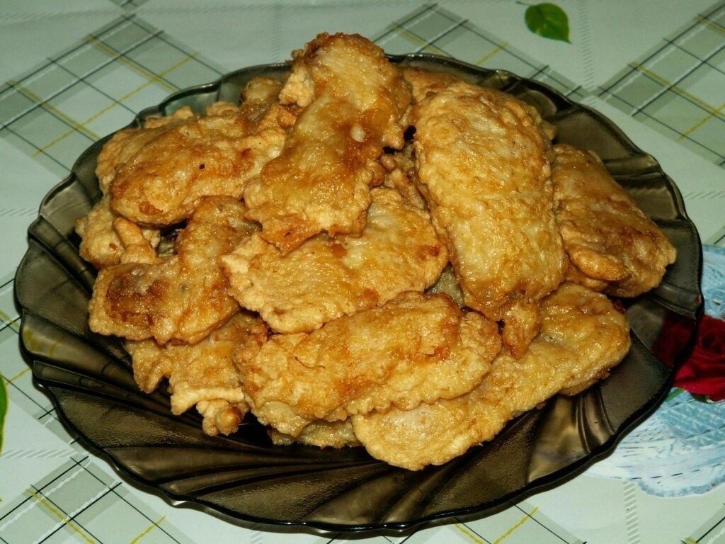 Курочка в особом кляре👍 Продукты: куриные грудки - 600 г., яйца - 3 шт., мука - 2 ст.л. с верхом, лимонный сок - 1 ст.л., зелень петрушки, соль, перец, смесь приправ ";карри";, тертый сыр - 50 г. (на любителя). Приготовление: грудки порезать на порционные кусочки, натереть их небольшим количеством соли и приправой ";карри";. Затем приготовить кляр - разбить в просторную миску 3 яйца, посолить, поперчить, добавить петрушку, лимонный сок, все перемешать. Аккуратно ввести муку, чтобы не было комочков. Выложить в готовый кляр куски курицы и дать постоять минут 30-40. Выкладывать на сковороду с разогретым растительным маслом желательно так, чтобы кусочки не касались друг друга. Жарить с одной стороны - около 10 минут до образования корочки, с другой - около 5 минут, не допуская пересыхания.