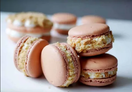 родукты: Миндальная мука - 150 г Яичные белки - 110 г (55 г + 55 г)* Сахарная пудра - 300 г (150 г + 150 г) Пищевой краситель - 3 капли Вода - 40 мл Для крема: Желтки - 2 шт. Сахара - 100 г Мука - 4 ст. л. Молоко - 500 мл Масло сливочное - 100 г Ванильный сахар - 1 пакетик Кроме того: Пергамент (берите качественный, белый, гладкий) *Примечание: 55 г белка - это в мл на делении "вода" будет 60 мл Как приготовить макаруны: 1. Отмеряйте 150 г сахарной пудры, смешайте ее с 150 г миндальной муки до однородности и просейте. Вылейте сверху 55 г белков и отставьте в сторону. 2. Смешайте оставшиеся 150 г сахарной пудры с водой и красителем, поставьте на средний огонь и после первых пузырьков варите 3:40-4 минуты (если у вас есть термометр кухонный, то варите до 118 градусов). 3. Тем временем взбейте 55 г белков и тонкой струйкой вливайте сироп (горячий, 118 градусов) в белки, не прекращая взбивать - сначала на большой скорости, а затем включайте маленькую и мешайте до остывания. 4.