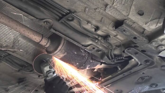 Сначала корпус с фильтром снимают с автомобиля. Затем корпус разрезают болгаркой и выбивают сажевый фильтр. Если в корпусе также есть катализатор, удалять фильтр нужно аккуратно. Далее корпус нужно заварить при помощи аргонной сварки или с использованием полуавтомата.