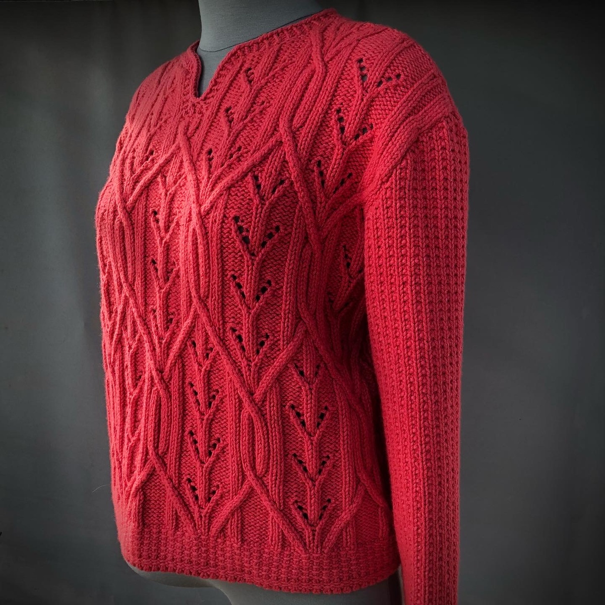 Связался джемпер размера эдак 50-го (52й тоже поместится) -мой манекен ему не по размеру, но все же фото прицепила. 🙂 ⠀ 🧶 пряжа 50%шерсть, 50%хлопок, толщиной 430 м. в 100 гр., спицы 3 мм. ⠀ 🧶 на спинку и перед набирала по 122 п. На передней части вязала узор только в лицевых рядах ( изнанка-по рисунку). Спинка и рукава связаны «ломаной» резинкой ( лицевые ряды резинка 1х1, изнаночные ряды -все петли изнаночные). Резинку вязала узором «джутовая петля» ( описание можно посмотреть в моем посте «Альтернатива резинке 1х1»). На проймы закрывала 2 раза - 3 петли, 1 раз -2 п., 3 раза-по 1 петле. По переду от середины проймы начала выполнять щелевидеую горловину, для чего одновременно закрыла в центре 6 п. И продолжила вязать раздельно до скруглёнными горловины. Когда довязала до горловины -сделала убавки: 1 раз -6п., 2 р. -3 п., 1 р.- 2 п. Перед последним рядом убавок начала выполнение плечевых скосов укороченными рядами -всего 3 укороченных ряда, в каждом сокращение на 7 п., затем провяз