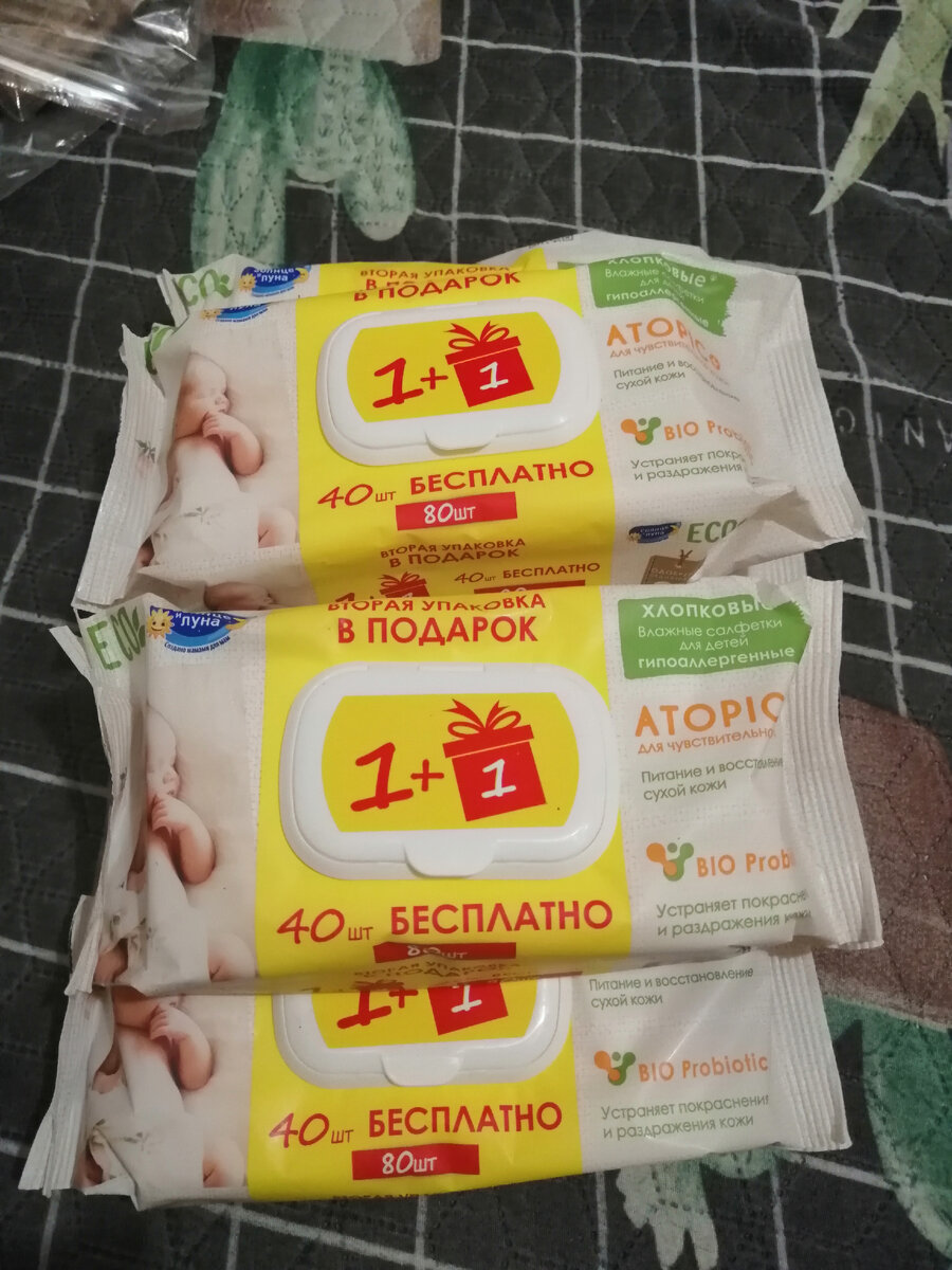 Ну вот, начался март, пришла первая посылочка, а я за февраль еще не все показала. Осталось то в принципе не много. Салфетки можно сказать вообще даром достались, по этому и взяла сразу много. Влажные салфетки всегда нужны. Хорошие салфетки не маленькие. Цена 55 руб. Да я не сказала сразу. Я беру все по оптовым ценам, потому, что на сима ленд действует программа по помощи многодетным семьям. Это очень приятно, очень экономит бюджет. На некоторые товары получается очень весомая скидка. Дальше у нас мыло детское. Люблю жидкое мыло, всегда беру с дозатором, мне так удобнее. Цена 63 руб. Освежитель воздуха с сухим распылением, что очень комфортно, нет ощющение как будто дождь прошел после распыления. Запах приятный, сладенький. Цена 117 руб. Пакеты фасовочные 100 штук. Хорошие, большие, не тоненькие пакеты. Всегда в хозяйстве нужны. Цена 58 руб. Покрывало 220 на 210. Оно конечно синтетическое, но приятное к телу.Думаю долго не прослужит, пойдёт катышками, но за такую цену и не жалко