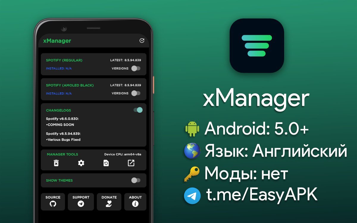 xManager — удобное приложение для установки модификаций Spotify Premium с возможностью обновления модов. Версия: 2.8 и продолжает обновляться) Интересная утилита но не популярная, попробовать по копаться в ней думаю стоит. Кому интересно, переходите на скачивание Удачи, не болейте)