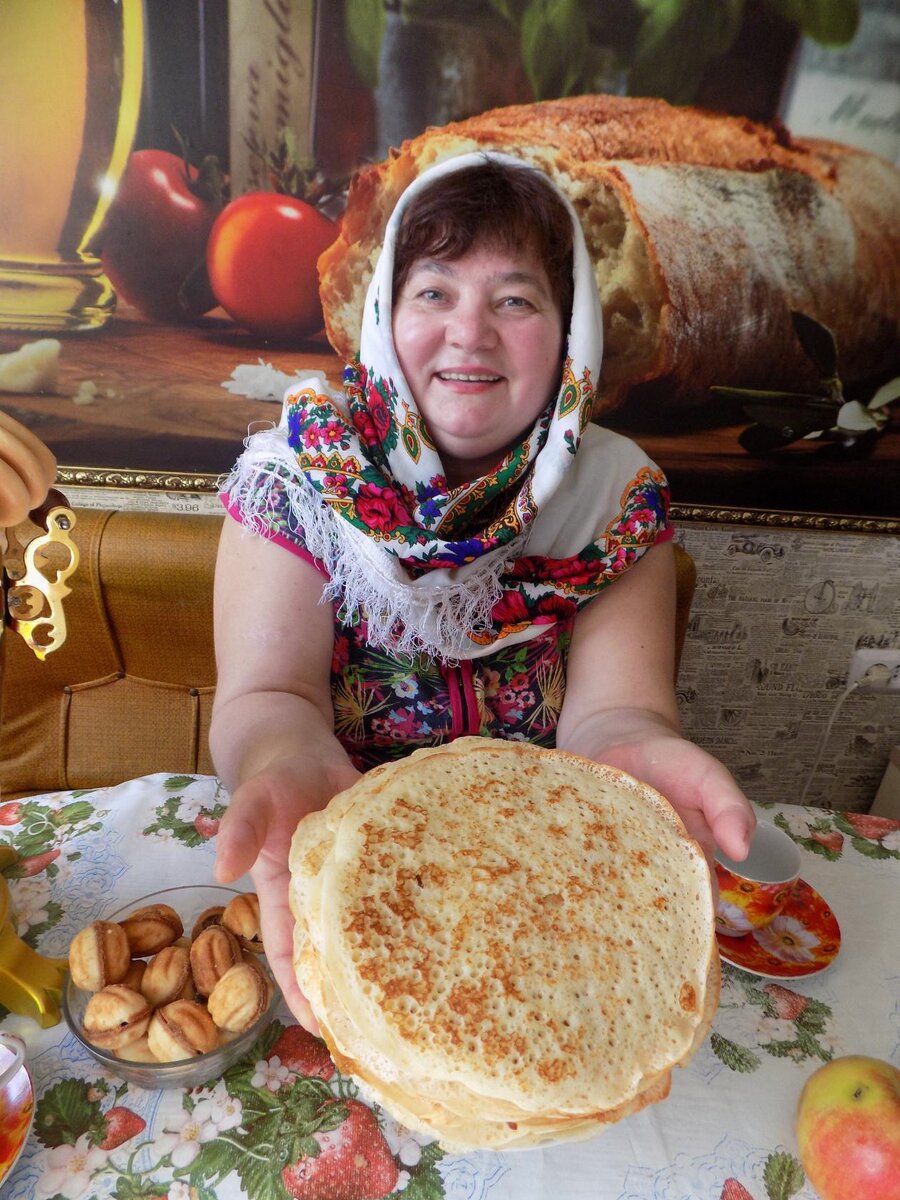 - Шесть литров цельного молока, 15 яиц, полкило сахара, два килограмма муки, килограмм топленого масла, - перечисляла моя свекровь, рассказывая, какие и сколько продуктов она заместила в тесто на блины. Александра Иосифовна лучше всех в Першино пекла тоненькие, просвечивающиеся на свету блинчики. Поэтому именно ей на свадьбу всегда заказывали блинчики. Она их пекла целыми днями, выдавая на гора целые стопки ароматных нежнейших блинов. В селе моего мужа блины на свадьбе – обязательное блюдо. Их заворачивают с творогом, мясом, печенкой, яблоками. И просто так подают – чисто блинчики. Поэтому стряпухи всегда с ревностью, наблюдали, в чьи блинчики заворачивают начинку, а чьи подают как таковые. Так вот – как таковые ценились больше всего – значит, они вкусны и сами по себе! Блинчики моей свекрови подавали сами по себе. Я тоже у нее научилась печь тоненькие, как папиросная бумага блинчики. Мама и сестры всегда удивлялись: как они у тебя такие получаются? Просто во рту тают. Я говорю та