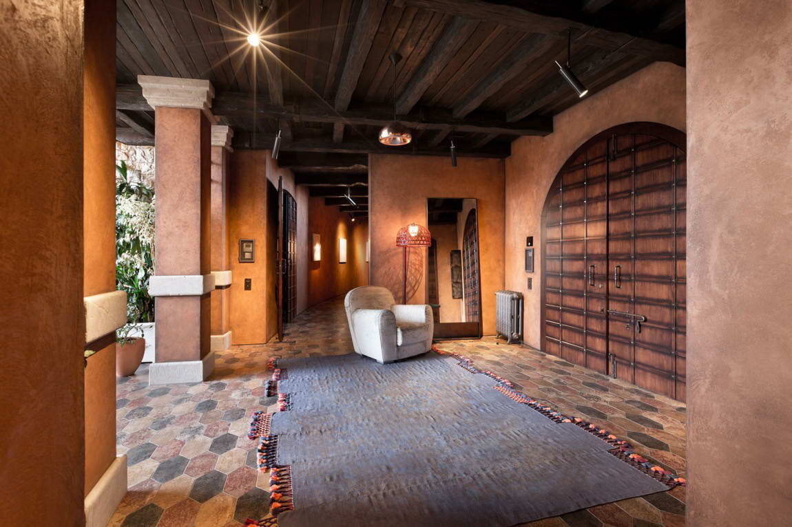 Этот загородный особняк выполнен в стилистике итальянского региона Тоскана. Резиденция наполнена специально отобранными в Италии, Германии, Франции отделочными материалами, элементами интерьера и декора, как, например, голова оленя, отделанная старинным гобеленом 19 века. Как результат видим замковую кухню с вертелом в камине высотой 1,94 м из обработанного вручную массива мрамора. Колодец на площади перед домом выполнен также из мрамора. Балки и потолки из векового дубового бруса. Стены спальни хозяев выполнены из листовой стали, покрытой воском и сочетаются с изысканной тканью Loro Piana. А в спальне юноши с древними иконами соседствуют с картинами Roy Lichtenstein. Название: Резиденция «BO» (Residence BO)