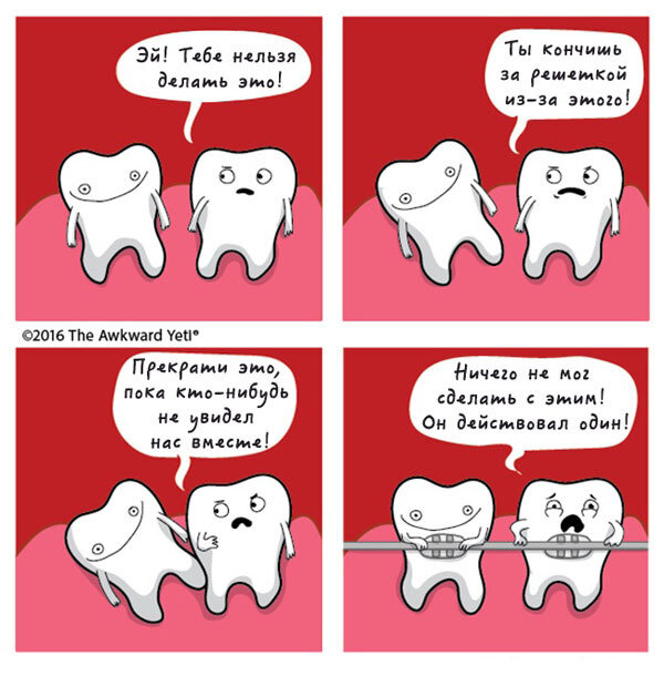 "Любовь - это смотреть в одном направлении"? Так вот, мои зубы друг друга ненавидят. Из-за заборчика во рту я росла серьёзной как Алёша Попович. Даже в зеркало себе не улыбалась. ⠀ Первое удаление зуба запомнилось леденящим страхом, дикой болью и запахом перегара от врача. В тот день я так и не узнала, что такое анестезия. Зато стала заикаться при слове "стоматолог" и пообещала себе, что больше не вернусь в это адское место. ⠀ Много лет прошло прежде чем воровка пломб вновь направила меня в страшное кресло. Больше ириски я не покупаю. ⠀ Я планировала просто полечить зубик, но узнала, что мне нужен новый рот. Ребятаааа... Это был увлекательный аттракцион. Лечение, имплантация, списания с карты. ⠀ Правда, мои зубы по стойке смирно так и не встали. Моя челюсть слишком волевая, брекеты с ней не справятся. Нужно сначала её сломать, подвинуть и есть пару месяцев через трубочку. ⠀ Я представила врача в боксерских перчатках, который собирается сломать мне челюсть, и дрожь прокатилась по телу