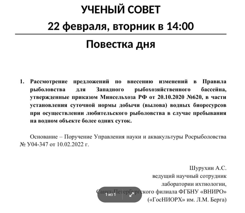 Самое грустное, что на раздаваемых до начала этого "совета" материалах уже значилось под формулировкой "одобрено заседанием ученого совета Санкт-Петербургского филиала ВНИИРО от 22.02.2022.