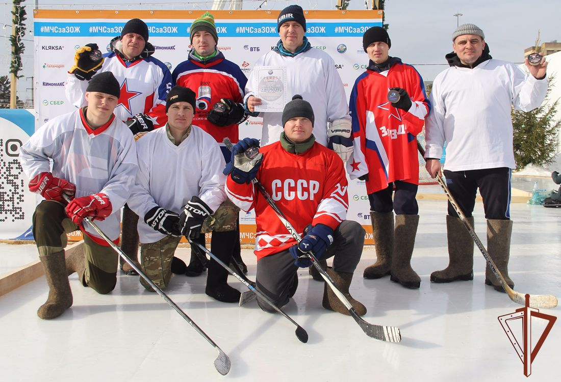 В Тюмени сборная команда военнослужащих и сотрудников областного управления Росгвардии приняла участие в открытом турнире по хоккею на валенках «Огненная шайба», организатором которого выступило региональное ГУ МЧС.