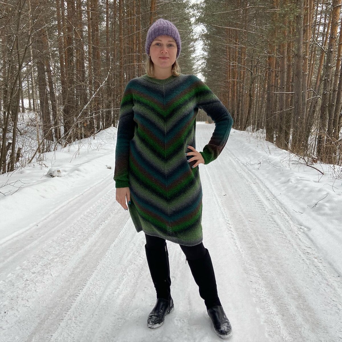 Я сама до сих пор не верю, что сделала это! И очень хочу поделиться с вами. Уже потом поняла, что модель очень не новая, и во многих журналах вязали, и различные сайты публиковали. И это огромный простор для творчества и фантазии. Я связала самый простой вариант гладью, дальше распишу подробно Это супер-платье под названием Дуня_dress описание я нашла у Нины, смотрим Инстаграм @you_yarn_dealer - там в закреплённых сторис все есть. у меня было 2 пасмы Дундаги 6/1, резинка спицы 3 мм, основное полотно 3,5 мм. Пряжу не стирала, естественно, просто перемотала в клубок это вам кусочек моего новогоднего начала Все вяжется элементарно. Набрать 120 петель, соединить в круг, 15 рядов резинка 1х1 спицы 3 мм. Затем переходим на спицы 3,5 мм и расставляем маркёры на каждые 30 петель, то есть 4 маркера. И все, просто вяжем с прибавками в каждом втором ряду перед маркёром и после маркера (то есть 8 прибавок за ряд). Вяжем, пока на спицах не получится 400 петель. Это по описанию Нины Я сделала н