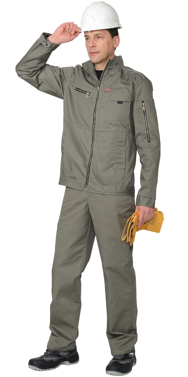 Куртка прямого силуэта, с центральной застежкой на металлическую молнию , с нагрудным накладным и прорезным, застегивающимся на молнию, карманами; нижними внутренними карманами с листочками; пояс и манжеты рукавов регулируются по ширине патами и кнопками. Воротник-стойка.