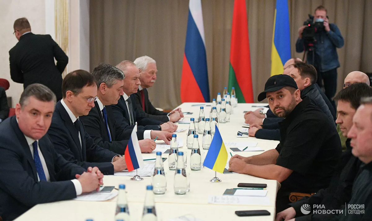 В понедельник в Гомельской области Белоруссии состоялись переговоры российской и украинской делегаций по поводу текущей ситуации на Украину. Делегацию РФ возглавляет помощник президента России Владимир Мединский. В нее также вошли замминистра иностранных дел России Андрей Руденко, глава комитета Госдумы по международным делам Леонид Слуцкий и посол России в Белоруссии Борис Грызлов.