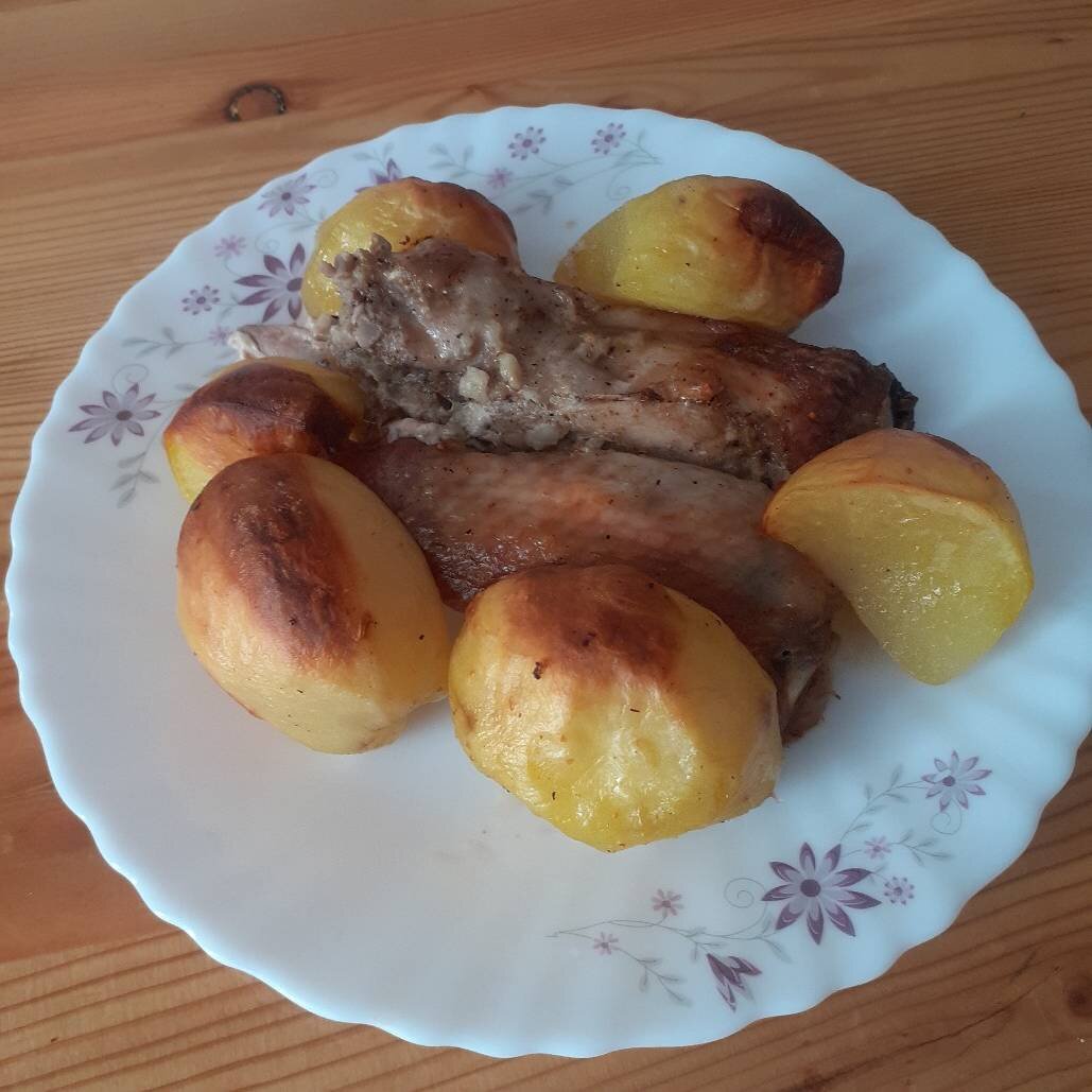 Очень просто, минимум продуктов. 🥰 Ингредиенты: Курицы, Картофель, Чеснок, Соль, перец, Масло растительное Способ приготовления: Моем, разделываем, маринуем, курицу. Маринуем 🙂, просто натереть тушку чесноком солью и перцем. Оставить на 20 - 30 минут. А пока почистить, помыть и крупно нарезать картофель. Поместить курицу на поверхность для запекания. В остатки маринада закидываем картофель. Подсолить, поперчить, добавить масло. Перемешать. Обложить курицу, вылить остатки маринада на картофель и в духовку. На 1,5 часа при t 180°. И вот какая красота. Приятного вам аппетита. 😊