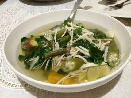 Филиппинский суп утан (он же тинола, или утан-бесау) — пример простой, но гениальной еды из честных продуктов. В основе — насыщенный овощной бульон без грамма животного жира. Тон в нем задает возбуждающий аппетит аромат имбиря. Стоит добавить к такому бульону соевого соуса и рисового уксуса, от выверенной пропорции крепости, соли и кислоты в мозгу загорается лампочка, которую в Азии называют пятым вкусом «умами». Дальше каждый волен собрать суп по собственному усмотрению и исходя из подручных ингредиентов. Утан — это пространство свободы, в ход могут идти и листовая зелень, и кабачки, и стручковая фасоль. В любом случае суп отлично справиться со своей главной миссией: с утра имбирное варево снимет напряжение после вчерашнего, а в обед насытит и очистит карму, вроде бы съел тарелку наваристого и отнюдь не бедного супа, а ощущение, что сделал что-то очень для себя полезное. Состав овощного бульона вариативен, но доминантой всегда служит имбирь — его остроты вполне достаточно, чтобы бул